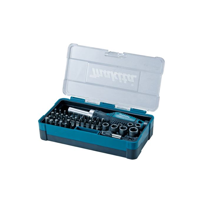 25 mm: 2x (PH1, PH2, PH3, PZ1, PZ2, PZ3, T10, T15, T20, T25, T30, T40), ravni: 2x (4.5, 5.5, 6.5), imbus: 2, 2.5, 3 2x (4, 5, 6), nasadni ključevi-36 mm: 5, 6, 7, 8, 9, 10, 11 mm, 1/4″ brzo promjenjivi magnetni držač