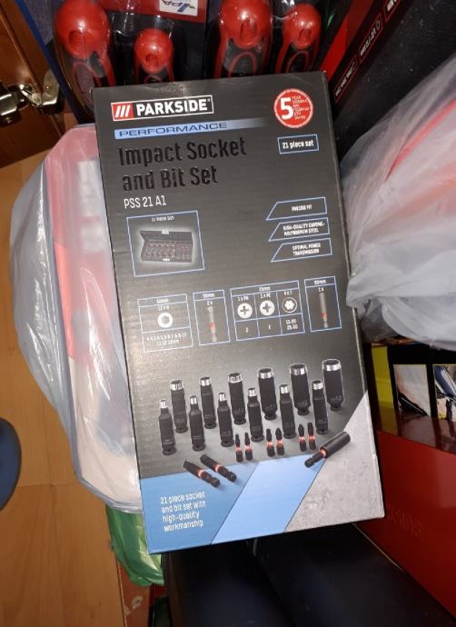 Performance profesionalna serija Parksidea. Chrome-Molybdenum čelik, optimalni prijenos snage. Veličine 4 do 13 mm (uključujući 4.5 i 5.5 mm). Ima i nastavke PH2, PZ2, i Torx 15, 20, 25, i 30. Sve u metalnoj kutiji. Novo, neraspakirano