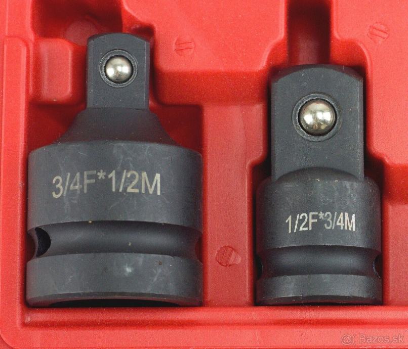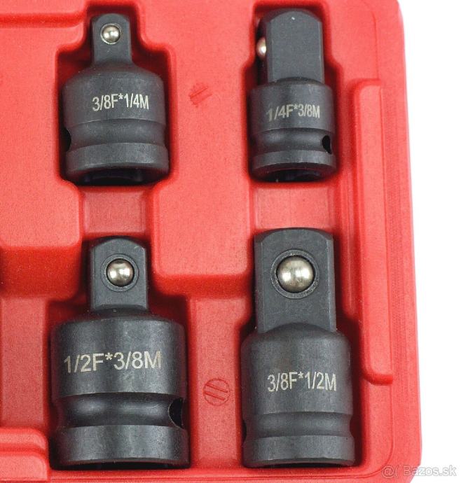 Sa svojim materijalom od legiranog čelika, može izdržati najveće mehaničko (zračni ključ) naprezanje. Set uključuje: 3/4"-1/2", 1/2"-3/4", 1/2"-3/8", 3/8"-1/2", 3/8"-1 / 4", 1/4"-3/8".