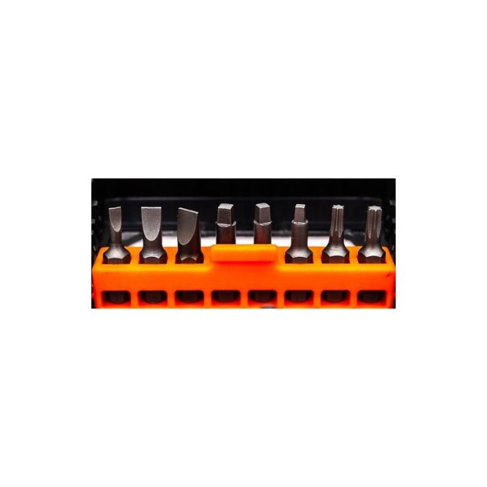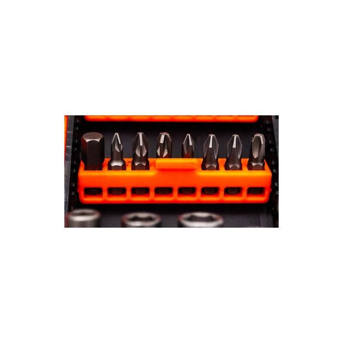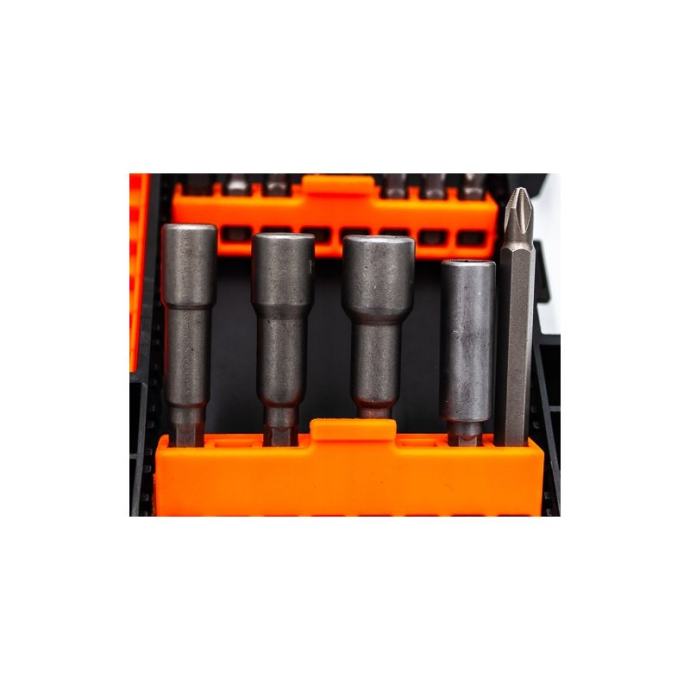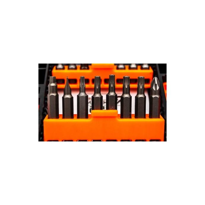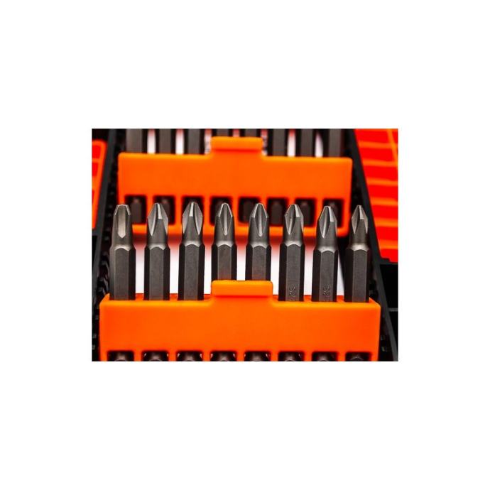 C6515 je set vrhova (45 komada) u dužinama od 25, 50 i 75 mm visokokvalitetni nastavci od S2 čelika, prekriveni antikorozivnim premazomsvaki bit ima zasebnu komoru, što znatno olakšava održavanje reda tijekom skladištenja i transportaskupno pakiranje opremljeno praktičnom kopčom za vješanje seta, npr. na remen.Set uključuje:ravni 25 mm (3,5,6) 50 mm (5)PH 25 mm (PH1, PH2x2, PH3) 50 mm (PH1, PH6x2, PH3) 75 mm (PH2)PZ 25 mm (PZ1, PZ2, PZ3) 50 mm (PZ2)Torx 25 mm (T15, T20, T25, T27, T30, T40) 50 mm (T15, 2xT20, 2xT25)Imbus 25 mm (H3, H4, H5, H6, H8)kvadrat 25 mm (SQ1, SQ2, SQ3) 50 mm (SQ2)magnetni dodaci "farmer" 65mm (6mm, 8mm, 10mm)1/4" magnetni držač, 60 mm.]]>