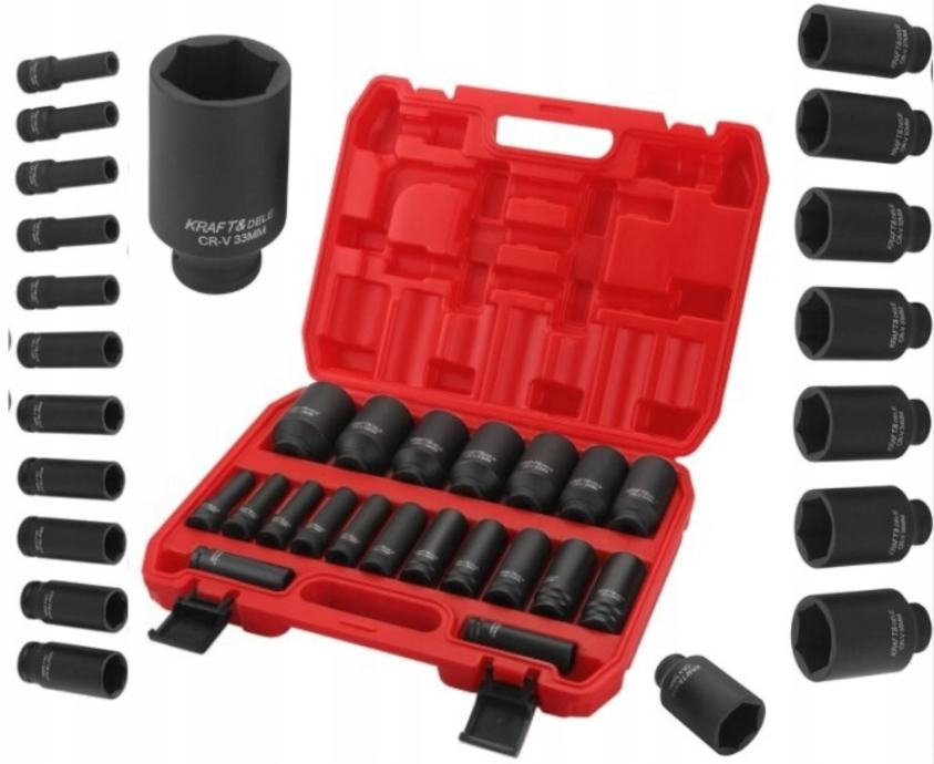 ⚙️ Vrsta prilogaUdarni, šesterokutni, duboki⚙️ Vožnja1/2 inča (12,5 mm)⚙️ Raspon veličina10 mm – 38 mm⚙️ MaterijalKrom-vanadijev čelik (Cr-V)⚙️ Broj komada20⚙️ PakiranjePlastični kofer