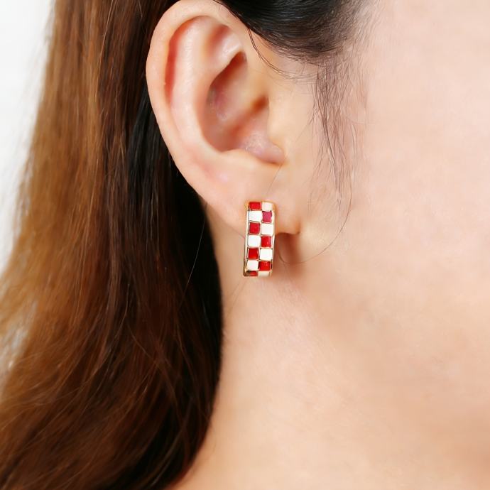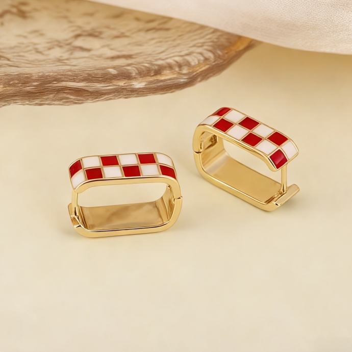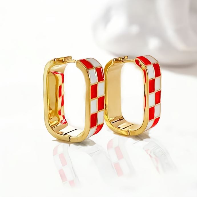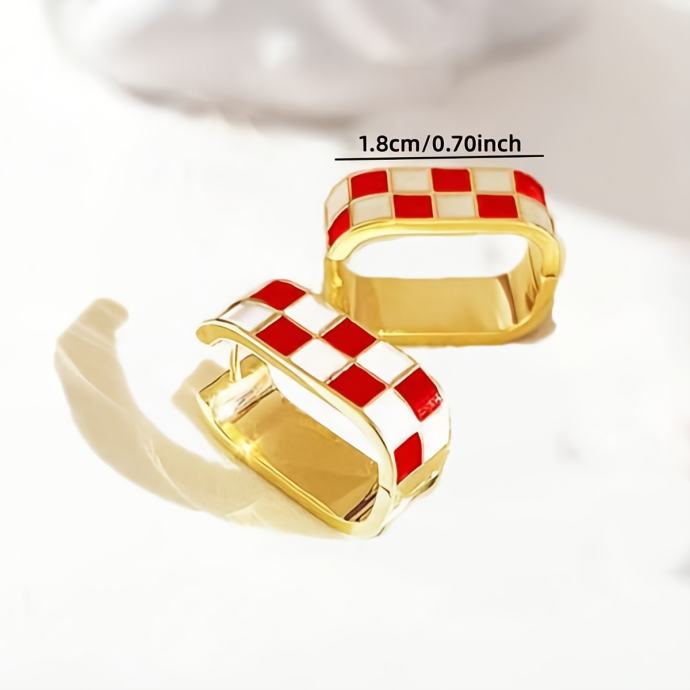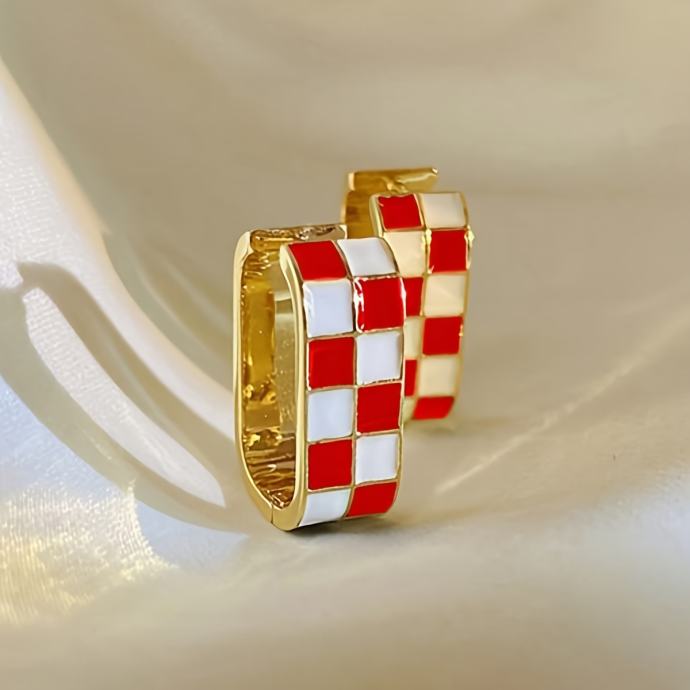 1 par modernih naušnica s kopčom i uzorkom šahovnice