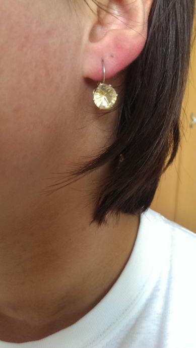 Posrebrene viseće naušnice sa žutim kamenom, imaju iza kopču. Gornje zelene prodane.