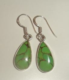 Srebrne naušnice s poludragim kamenom zelenim tirkizom. Srebro 925, sa žigom na poleđini.