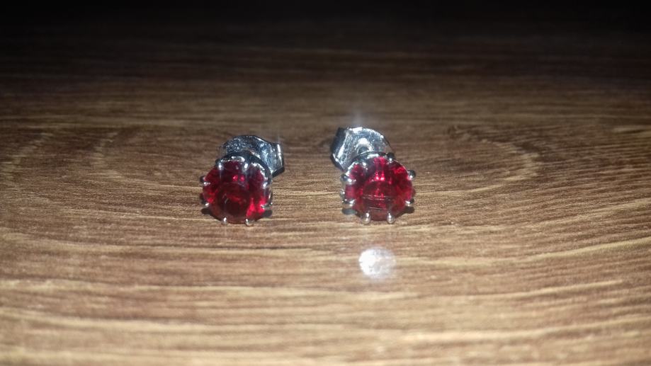 Bijele naušnice sa crvenim kamenom - BIŽUTERIJA, u odličnom stanju.