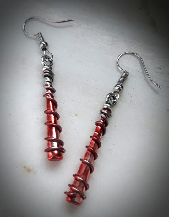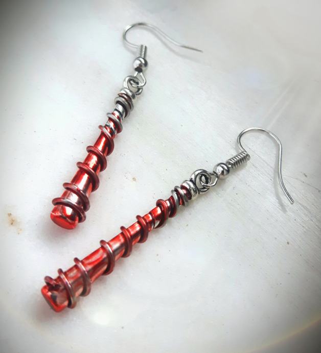 Naušnice s motivom basebalske palice. (Walking dead, Neganova palica).