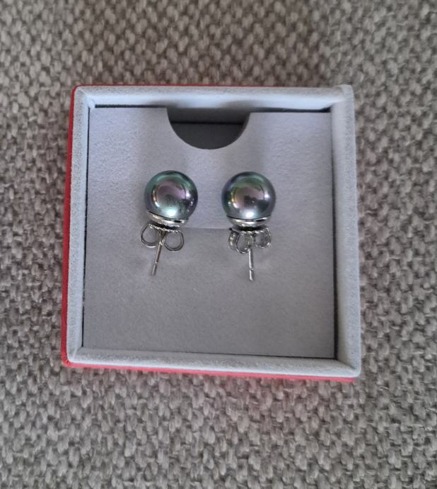 Sivi biser, promjer bisera 10 mm, srebro.