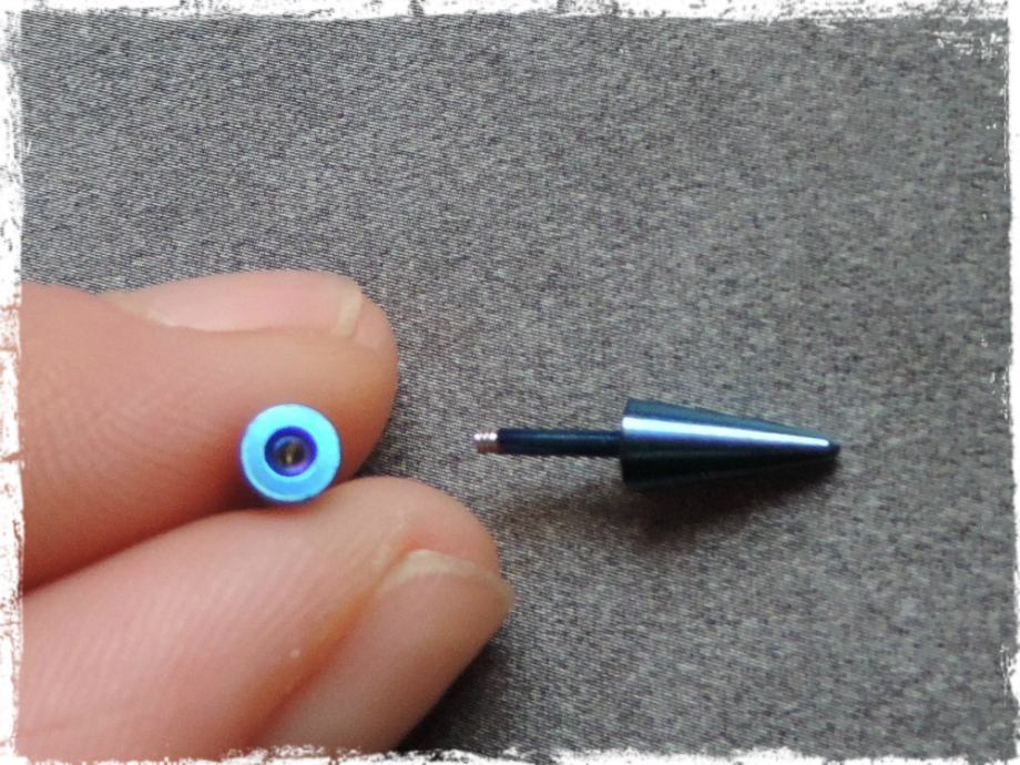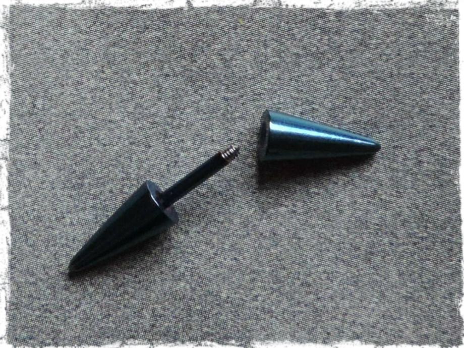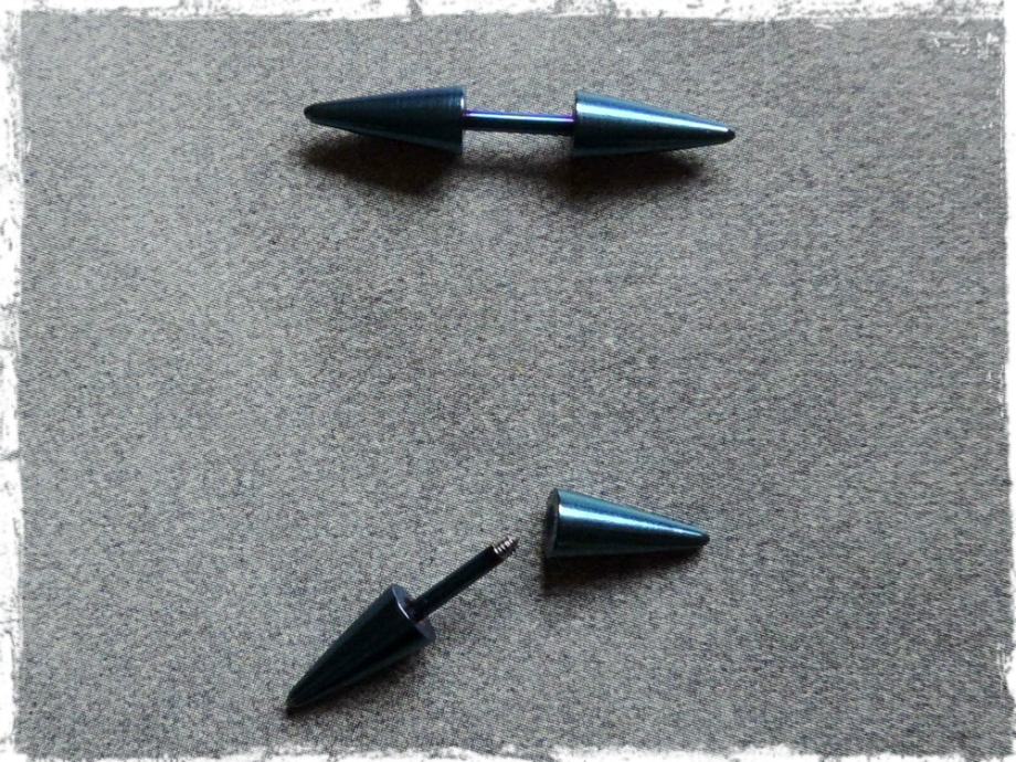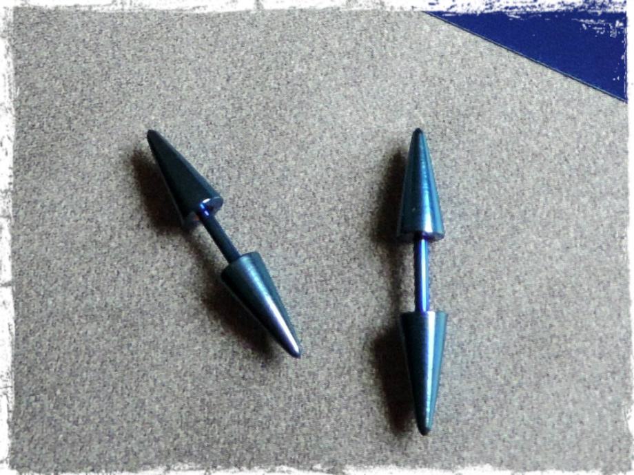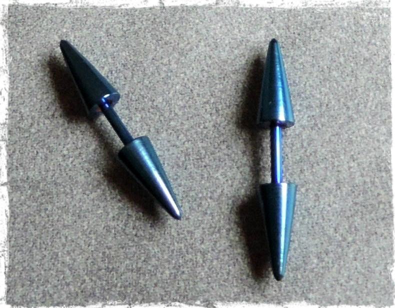 Spike naušnice od nehrđajućeg čelika u metalik plavoj nijansi.