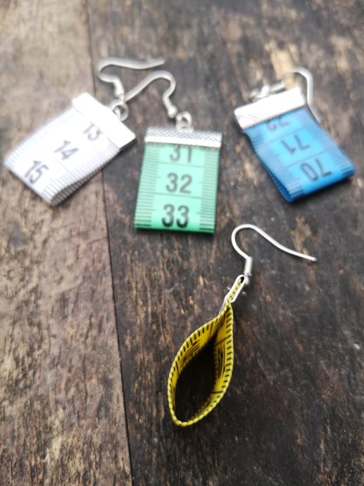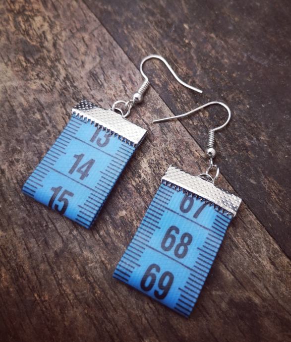 Cool naušnice s temom krojačkog metra, u plavoj boji.