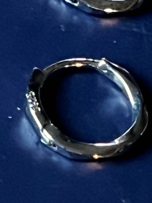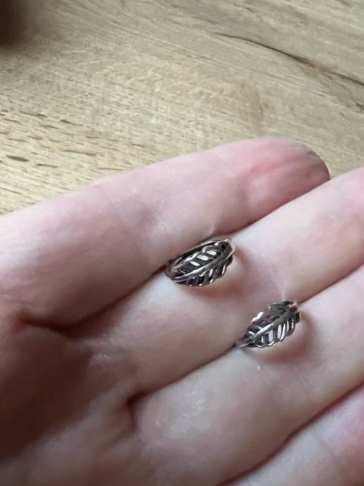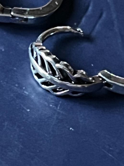 Prvi par su male naušnice u obliku lista s prorezanim uzorkom, diskretnog i elegantnog dizajna. Drugi par su kružne naušnice (huggie) s teksturiranom površinom, koje izgledaju lijepo i svakodnevno.