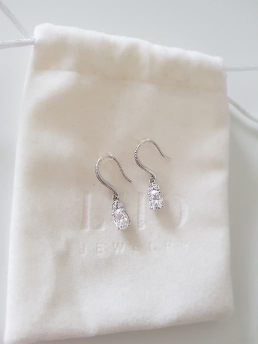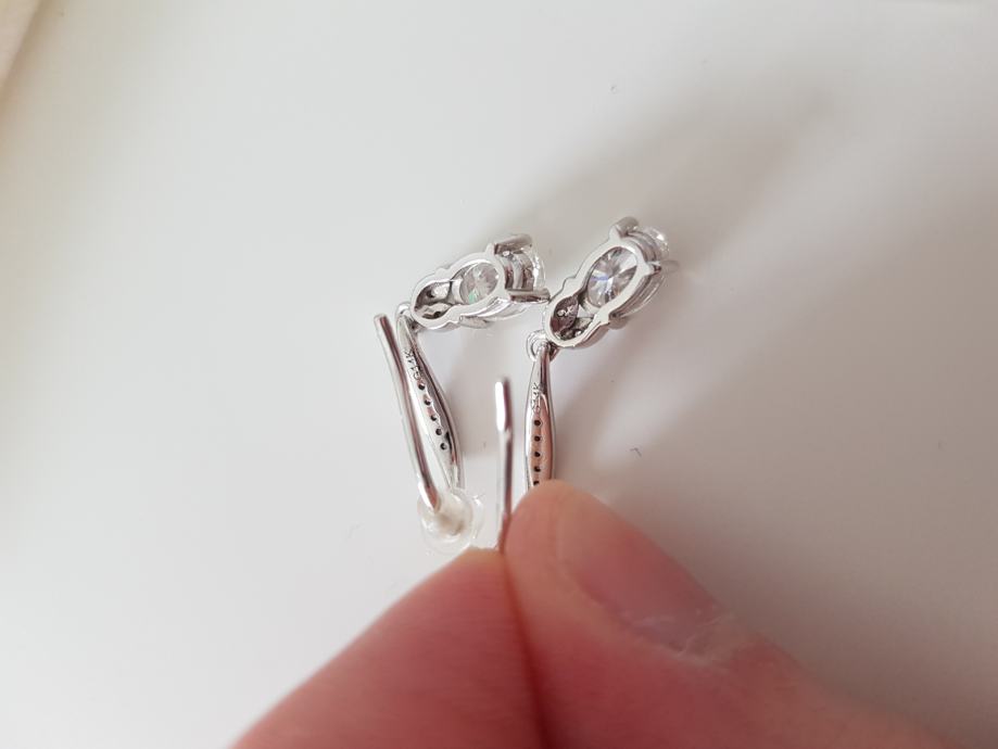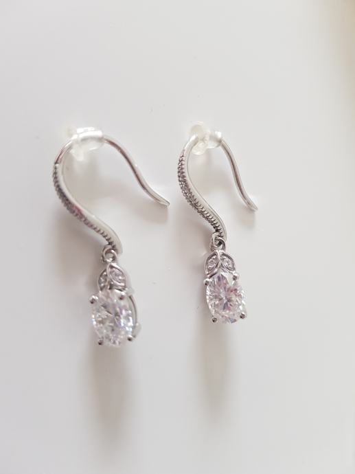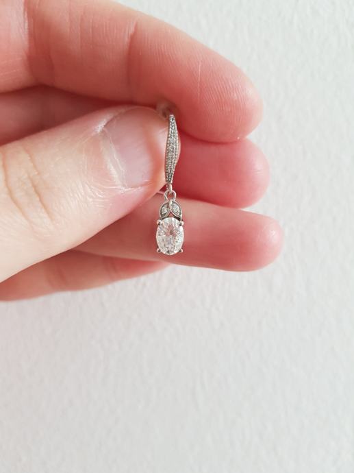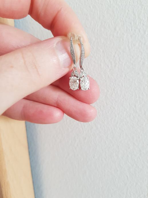 Prodajem potpuno nove naušnice od pravog zlata (14 karatno bijelo zlato, sa žigom) sa cirkonima i velikim visećim moissanitom.