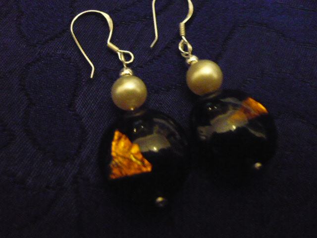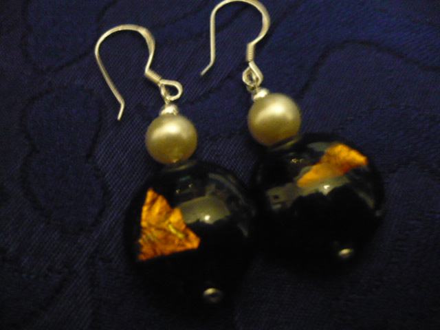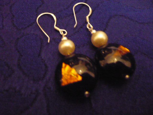 NAUŠNICE BOJANO STAKLO, PRAVI BISERI I SREBRO