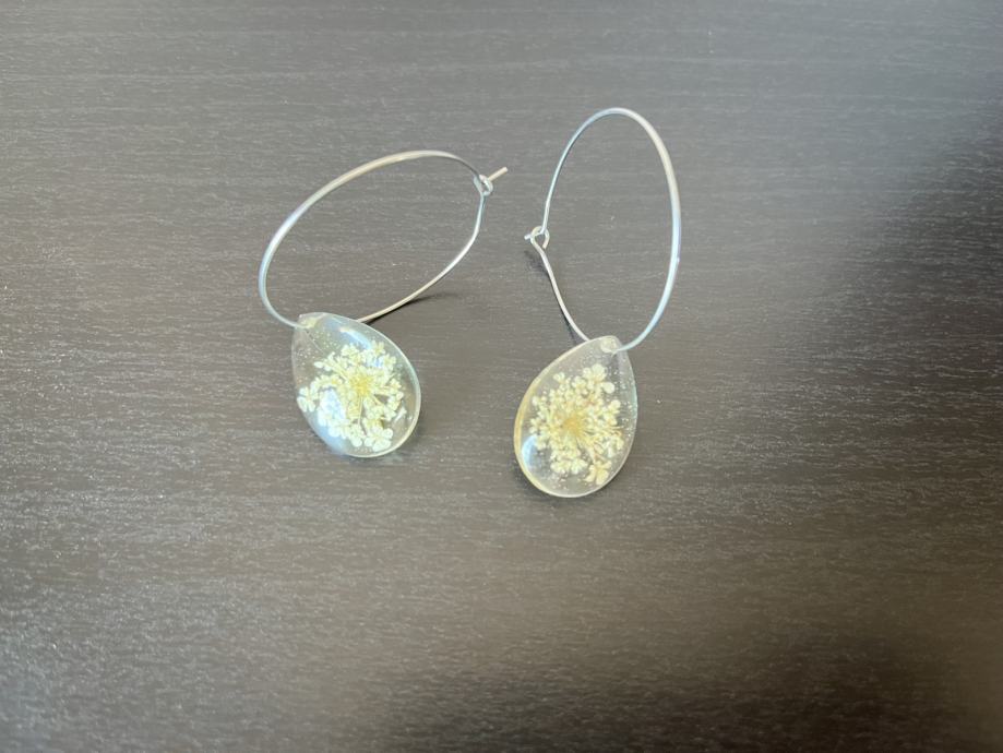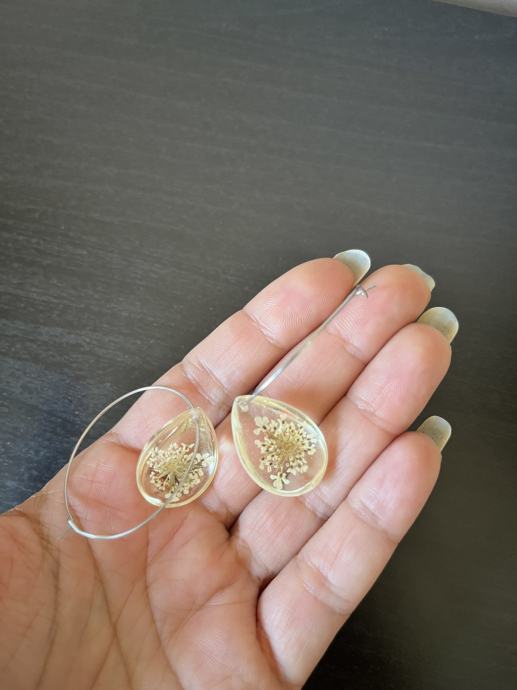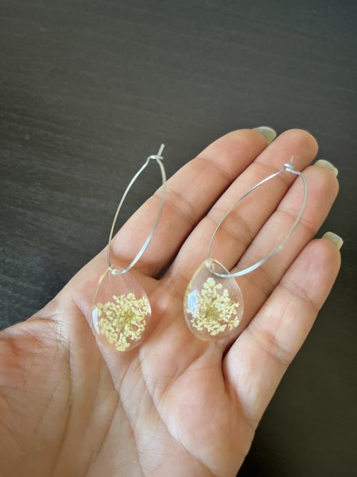 Naušnice s cvijetom divlje mrkve, nehrđajući čelik, bioepoxy smola, novo. VilinRosa