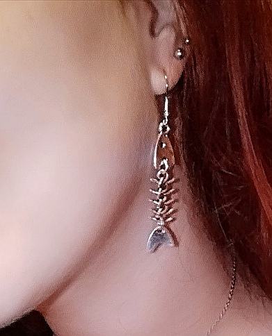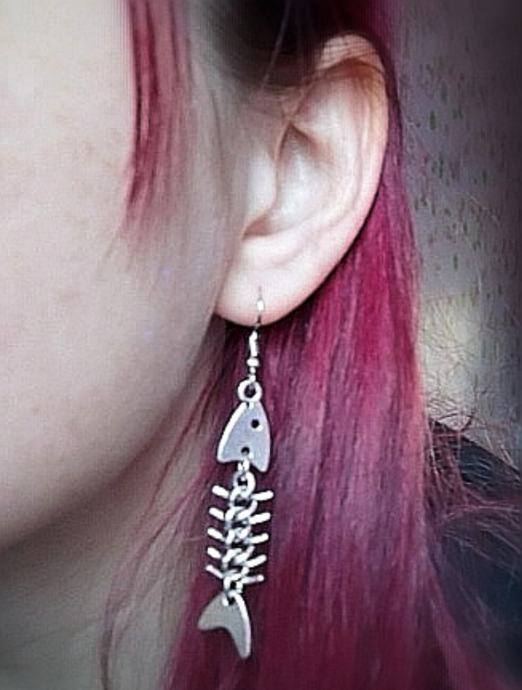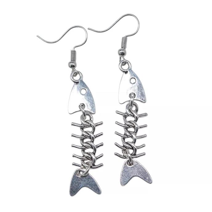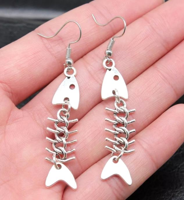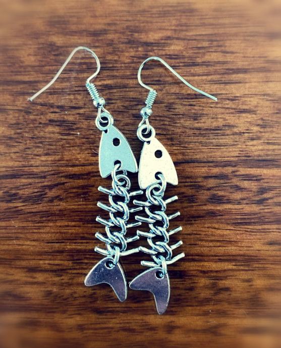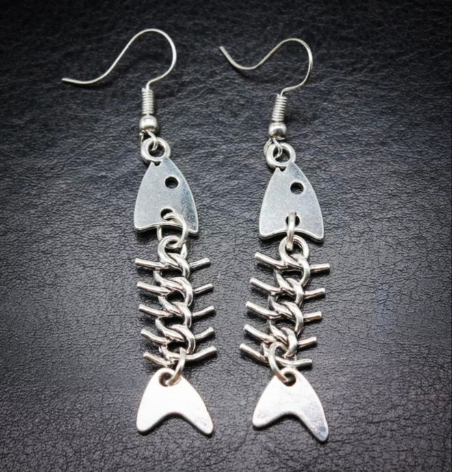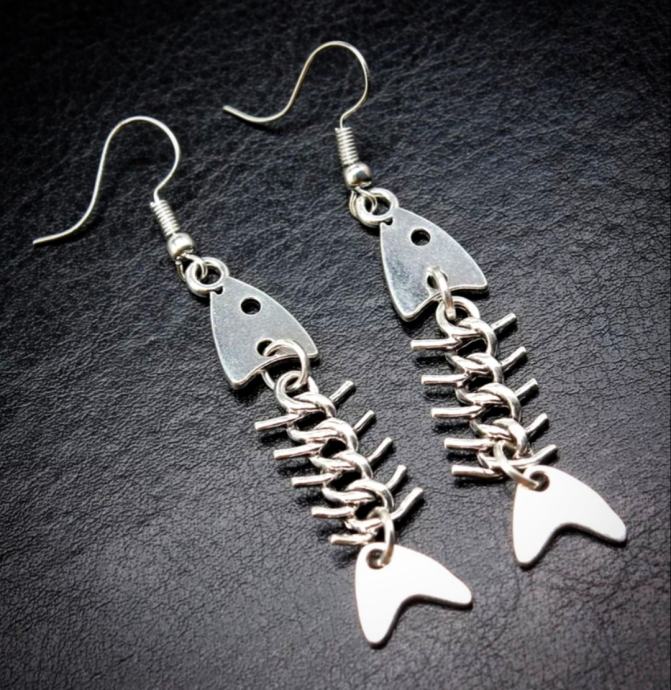 Kul viseće naušnice u srebrnoj boji, u obliku ribljeg kostura.