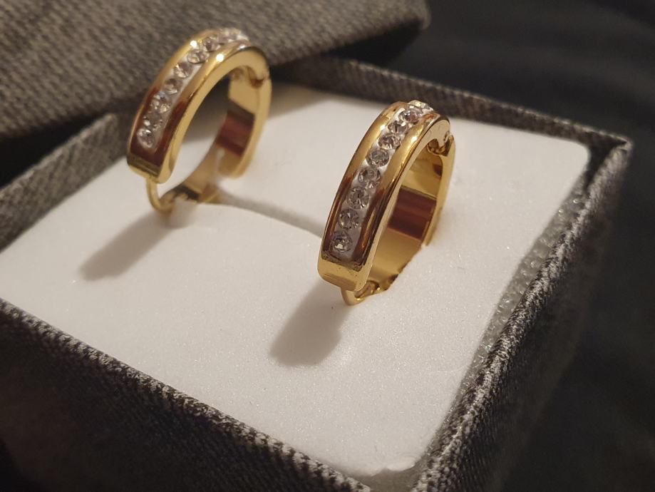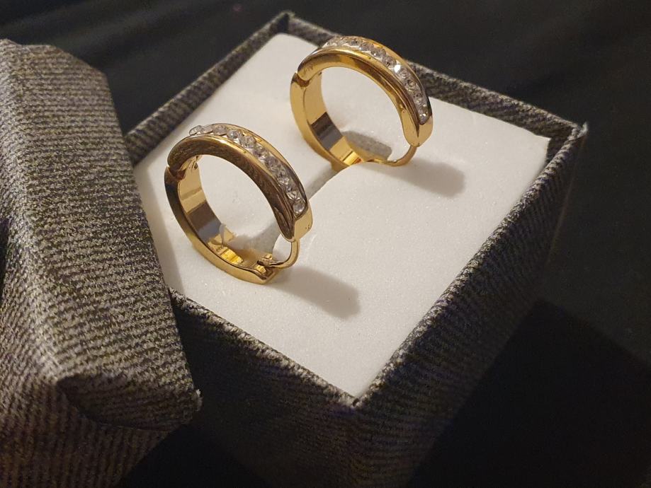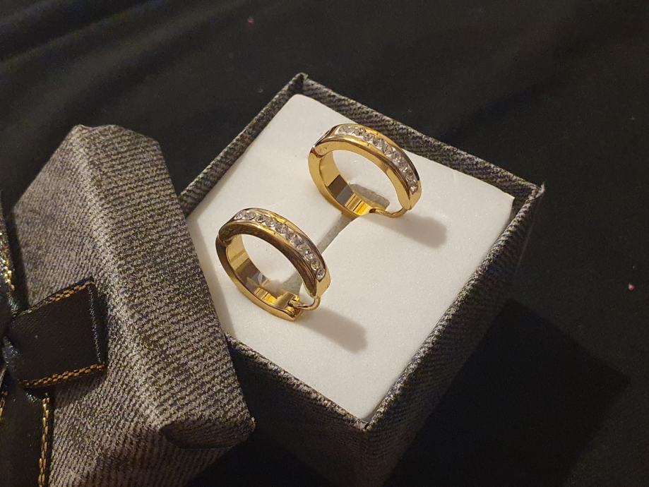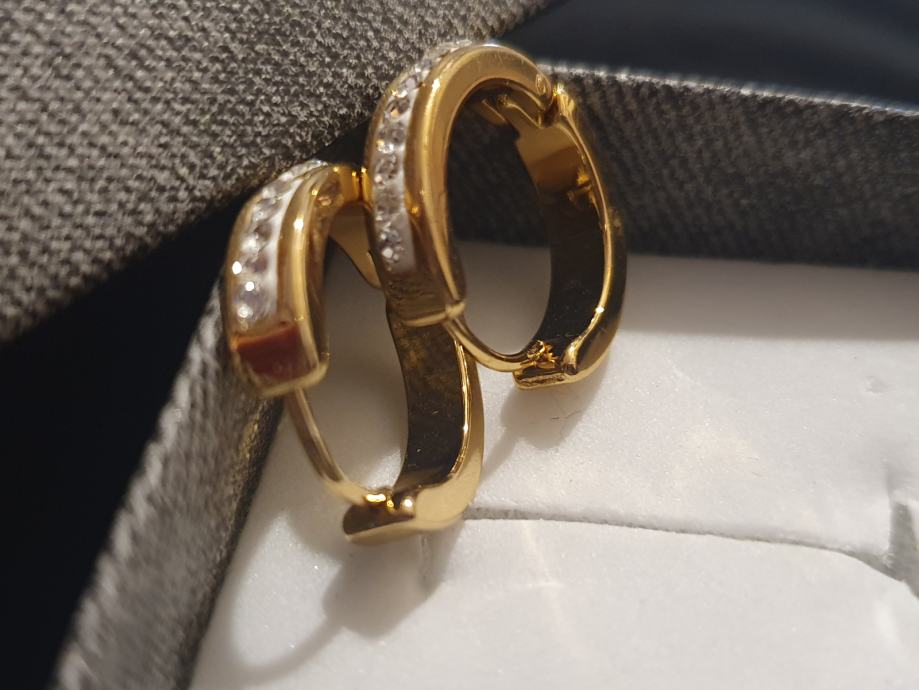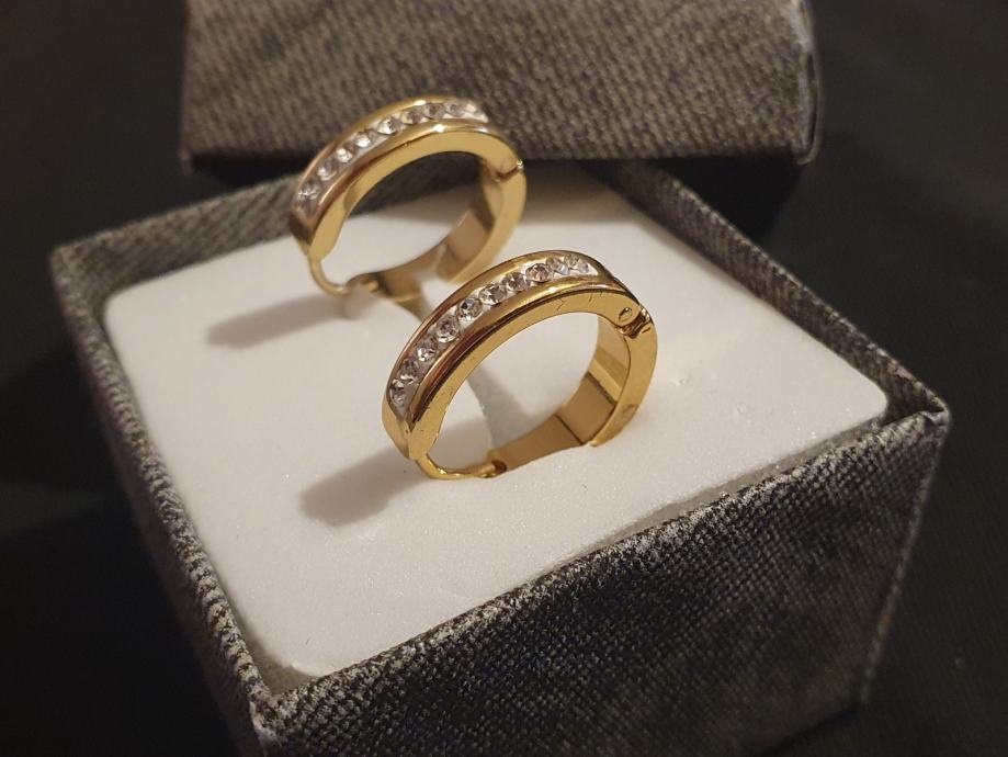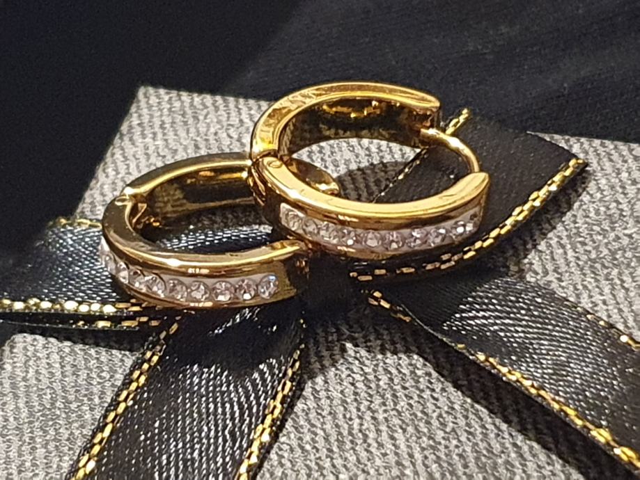 Naušnice kirurški čelik okrugle sa cirkonima pozlaćene