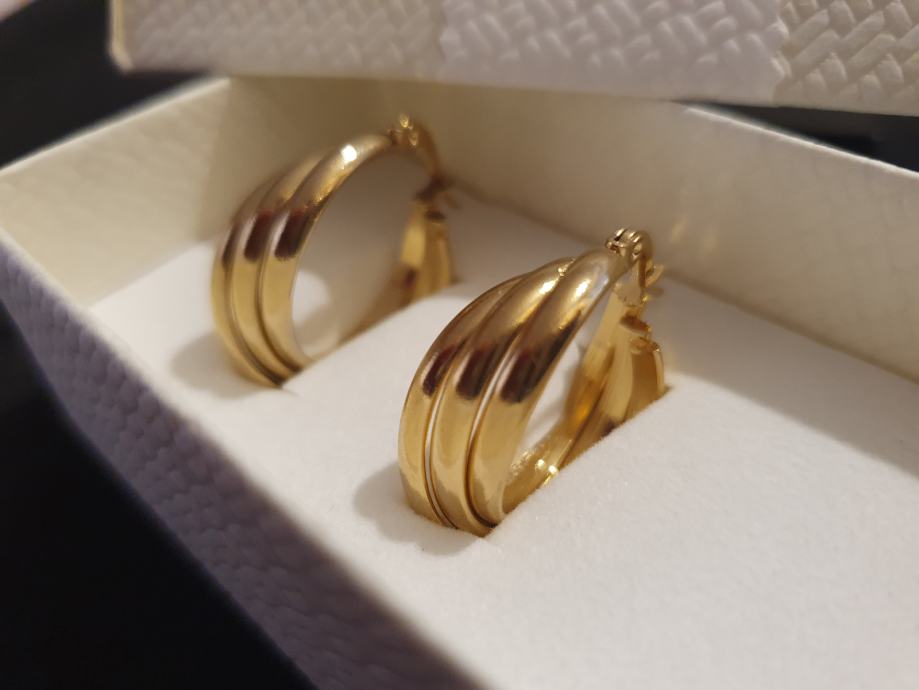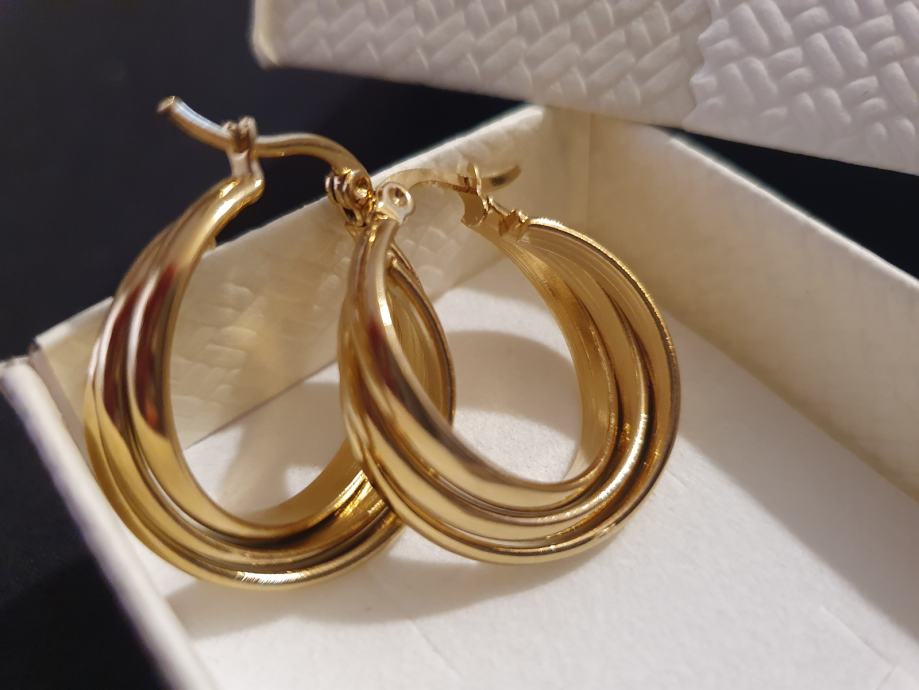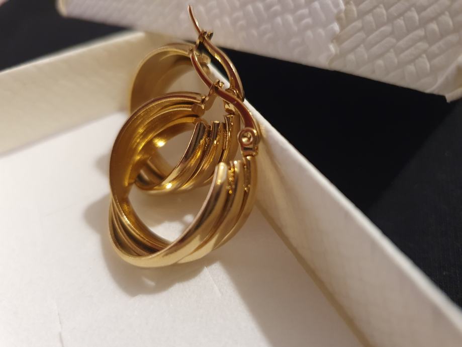 Naušnice kirurški čelik okrugle trostruke pozlaćene
