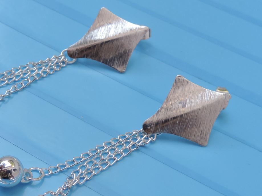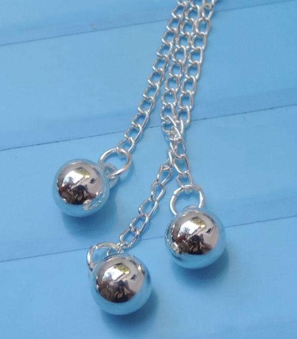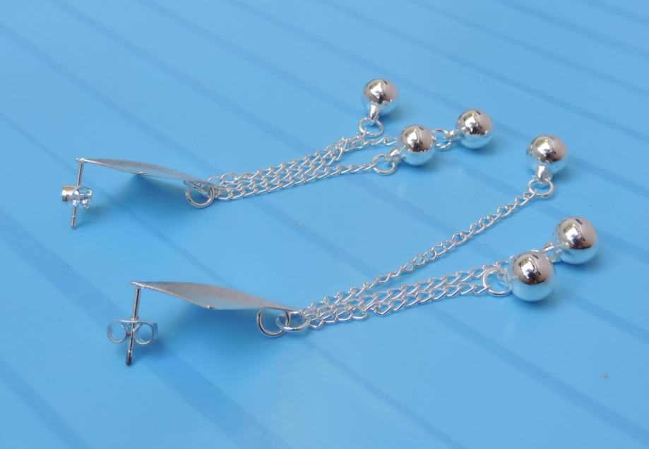 Iz matiranih rombova granaju se po 3 tanka lančića koji završavaju blistavim kuglicama (stranice romba 1,5-2 cm, promjer kuglica 0,8 cm).