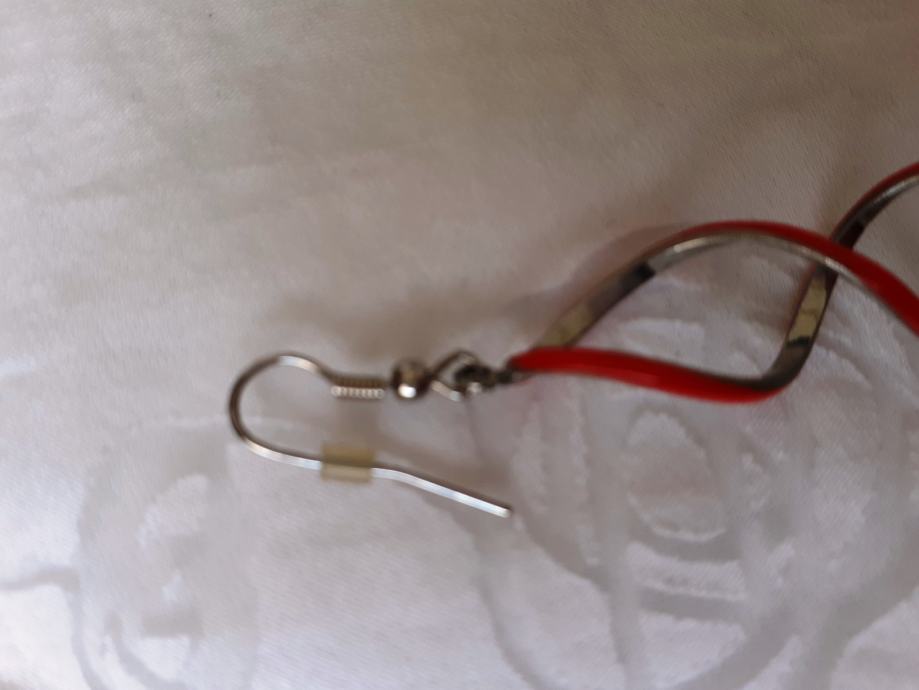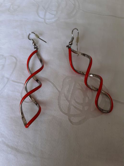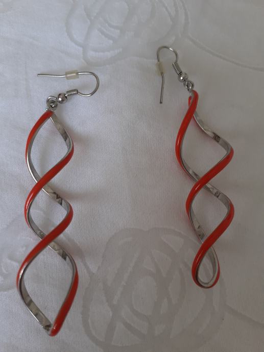 Bižuterija metalne duge naušnice srebrene i koraljne boje.