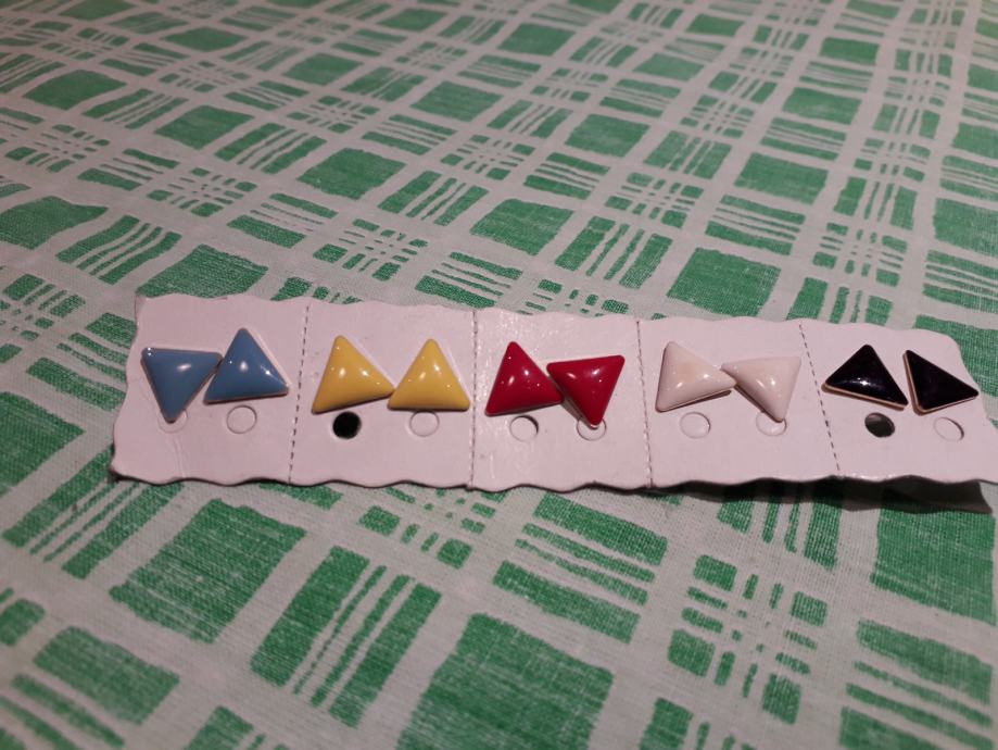pet pari naušnica, isti motiv u različitim bojama. cijena po paru 10kn