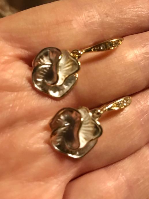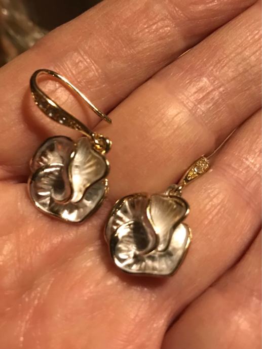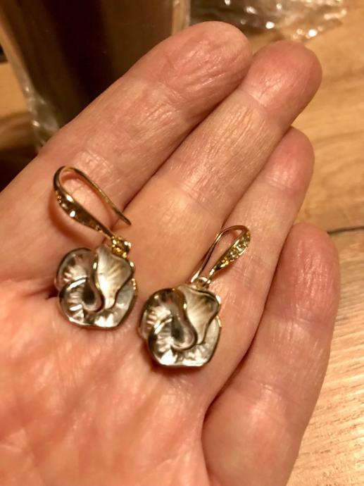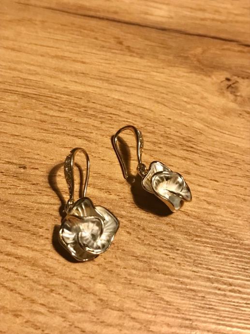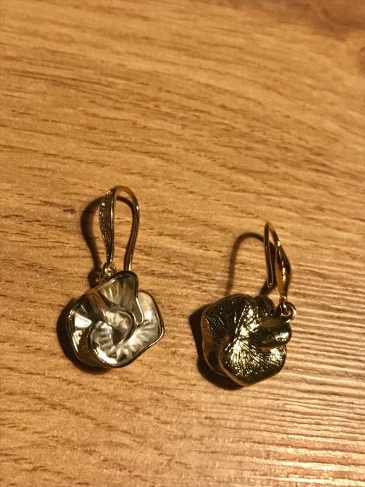 Prodajem naušnice od nehrđajućeg čelika s motivom cvijeta. Karike su jednostavne i elegantne, a ukrašene su privjeskom u obliku stiliziranog cvijeta sa svjetlucavim detaljima. Naušnice su nove, nikad nošene.