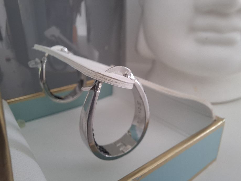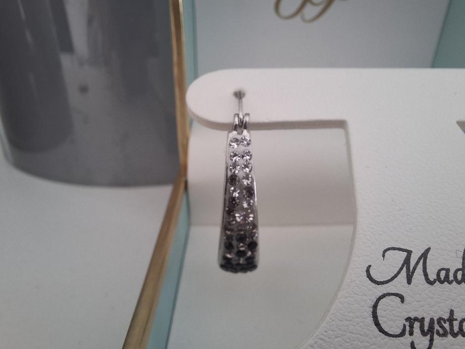 Prodajem nove naušnice od srebra, s etiketom i u originalnom pakiranju. Radi se o elegantnim karičicama ukrašenim Swarovski kristalima u crnoj i bijeloj boji, koji daju lijep kontrast i diskretno svjetlucanje. Završna obrada je fine silver plated.