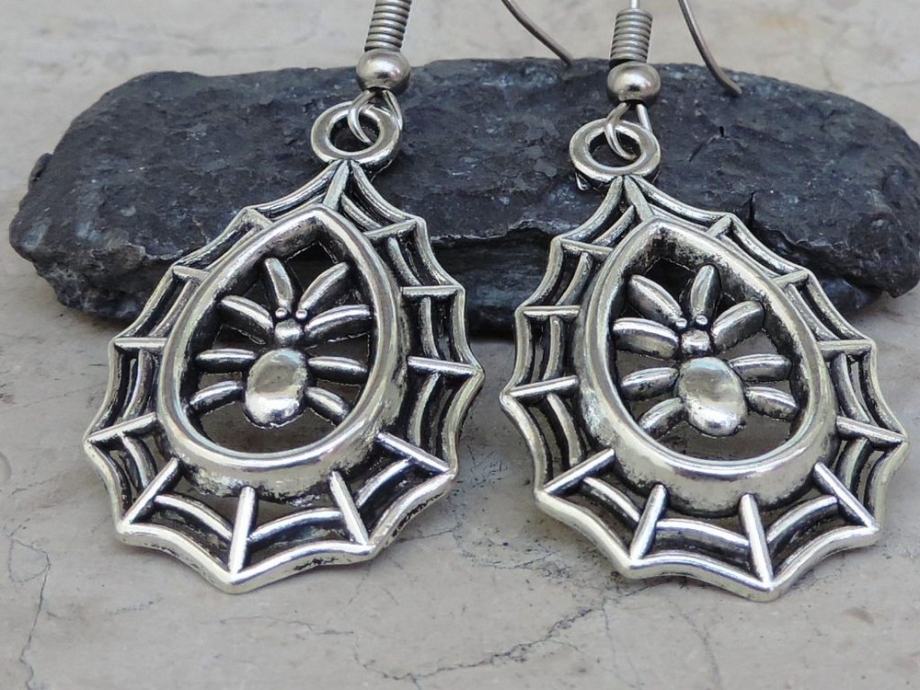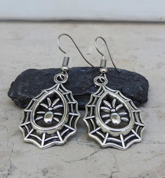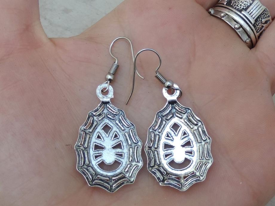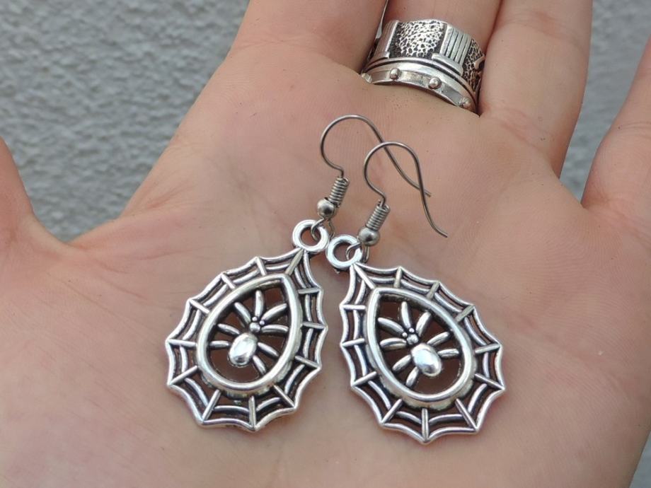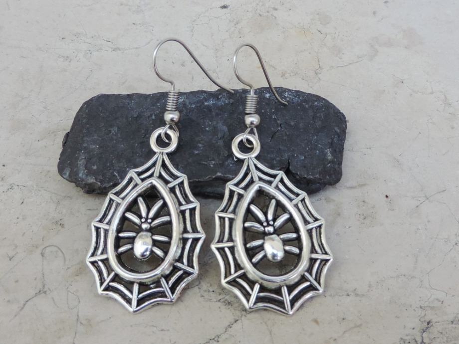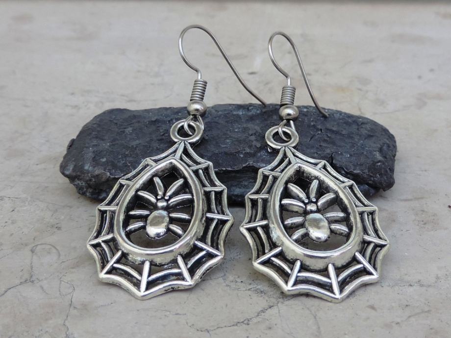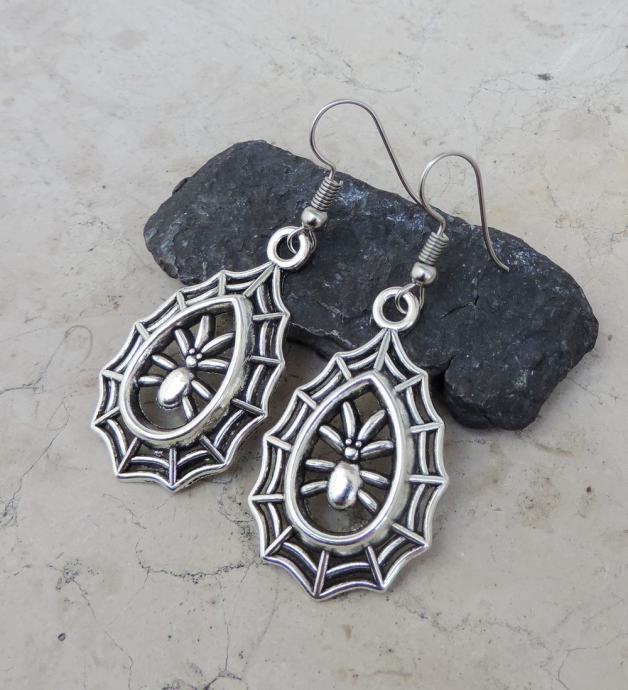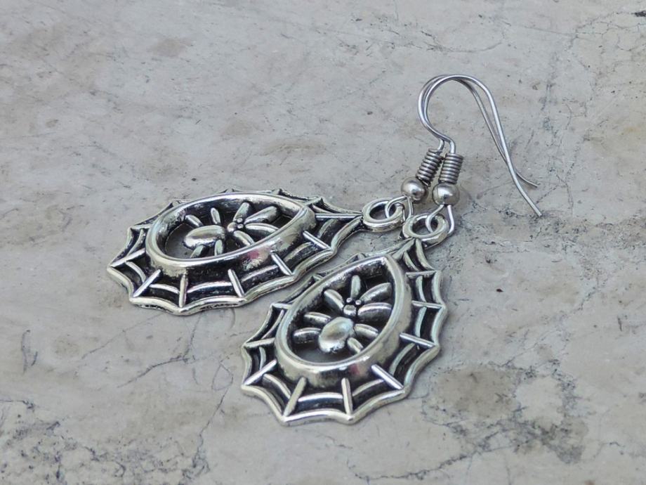 Efektne srebrne naušnice s paukom u mreži.