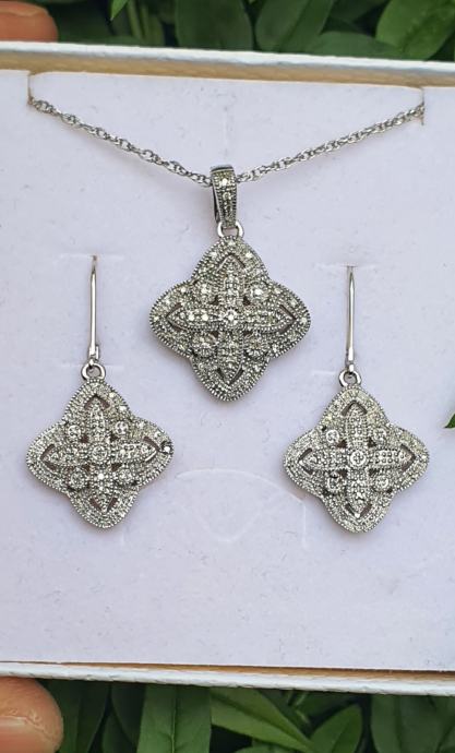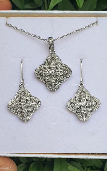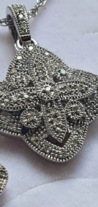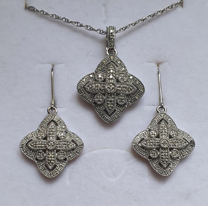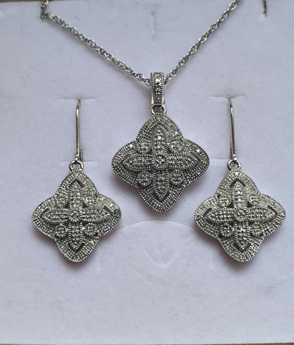 Krasan komplet dijamantne naušnice i privjesak predivan rad od srebra u Art deco stilu.