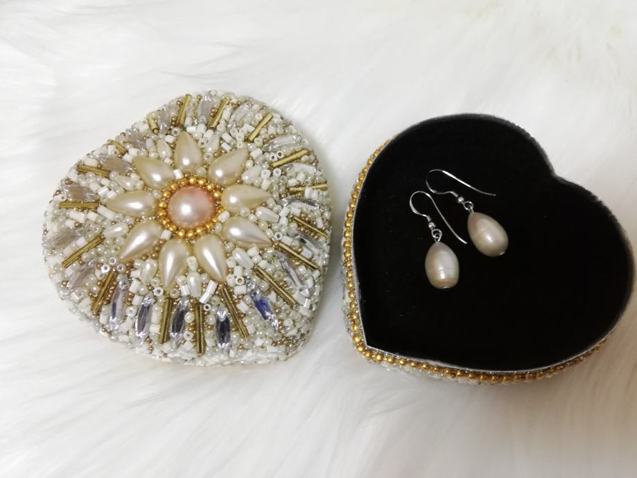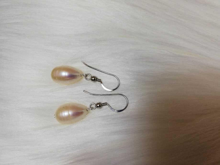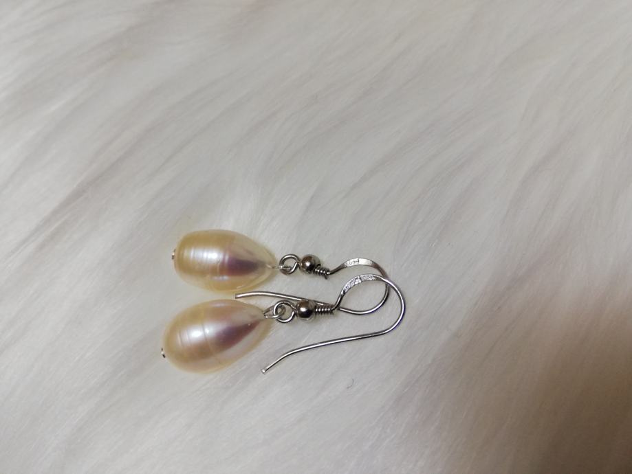 - naušnice od rječnog bisera (iz uzgoja), u obliku suze, veličina bisera je 9 x 15mm