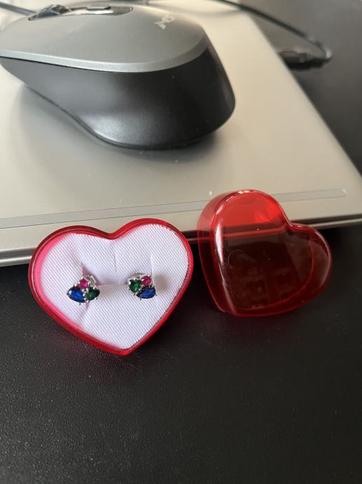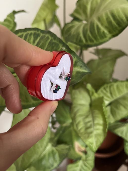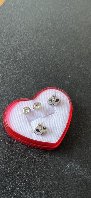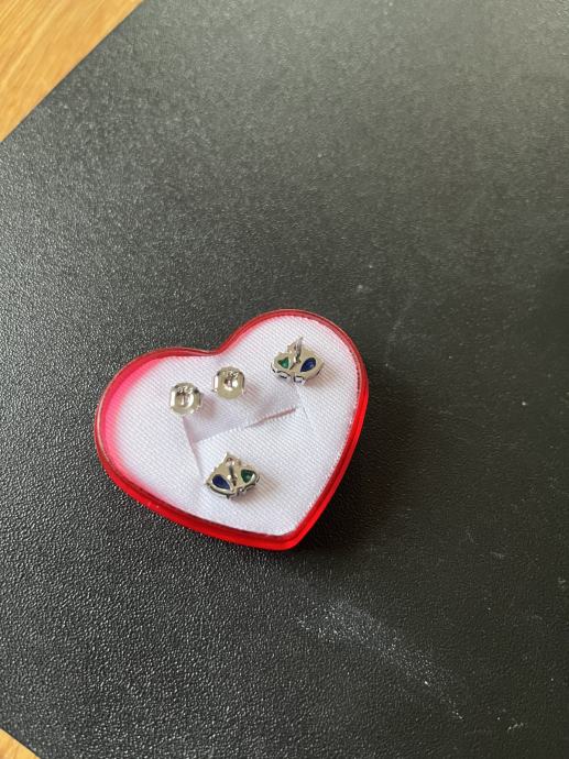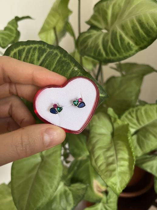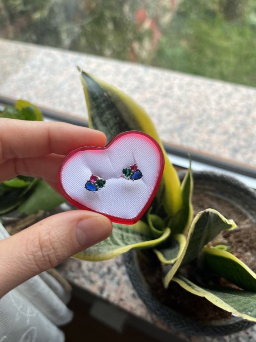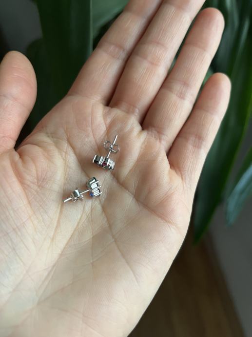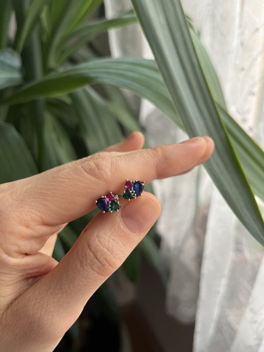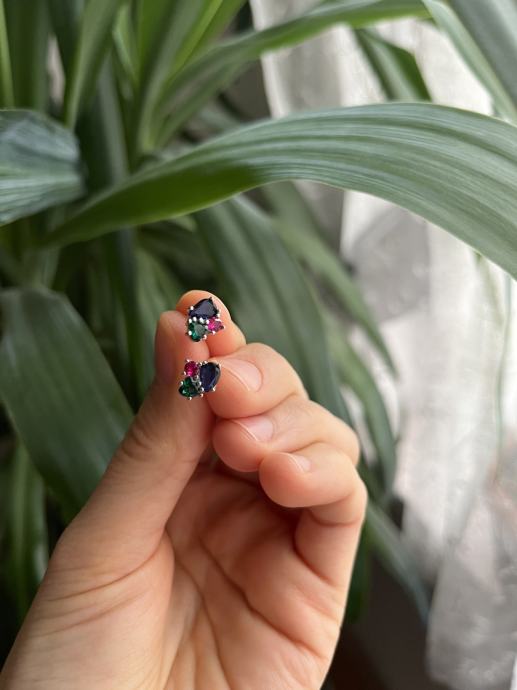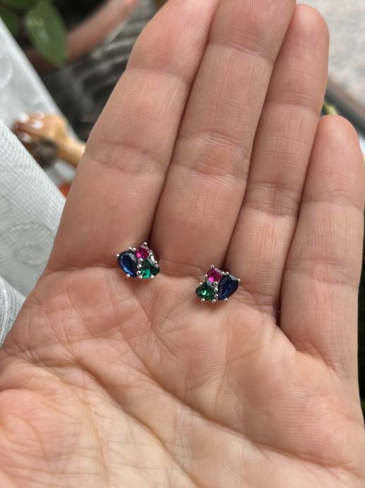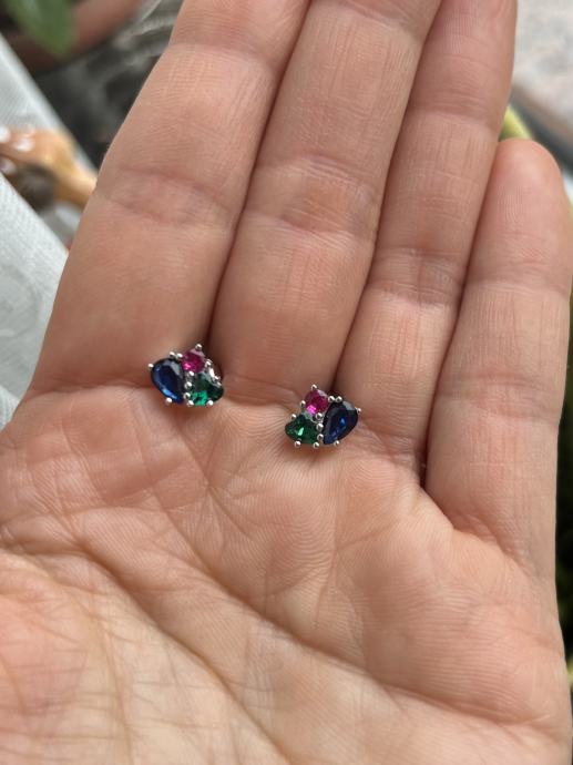 Naušnice s tri boje cirkona (plava, zelena i ružičasta), srebro 925.