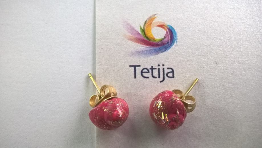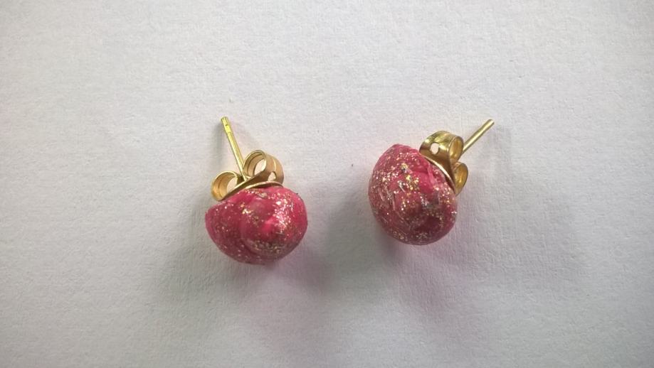 Naušnice su unikat, ručni rad. Puž je obojan u ružičasto sa zlatnim šljokicama.