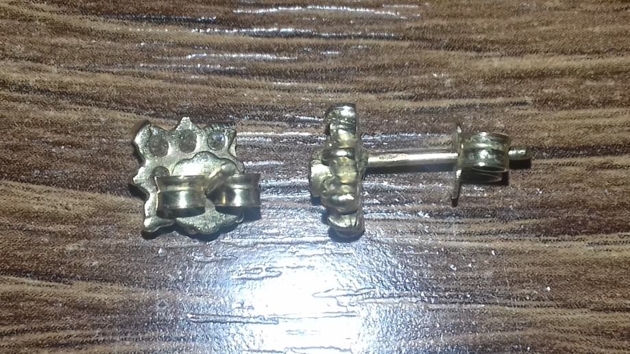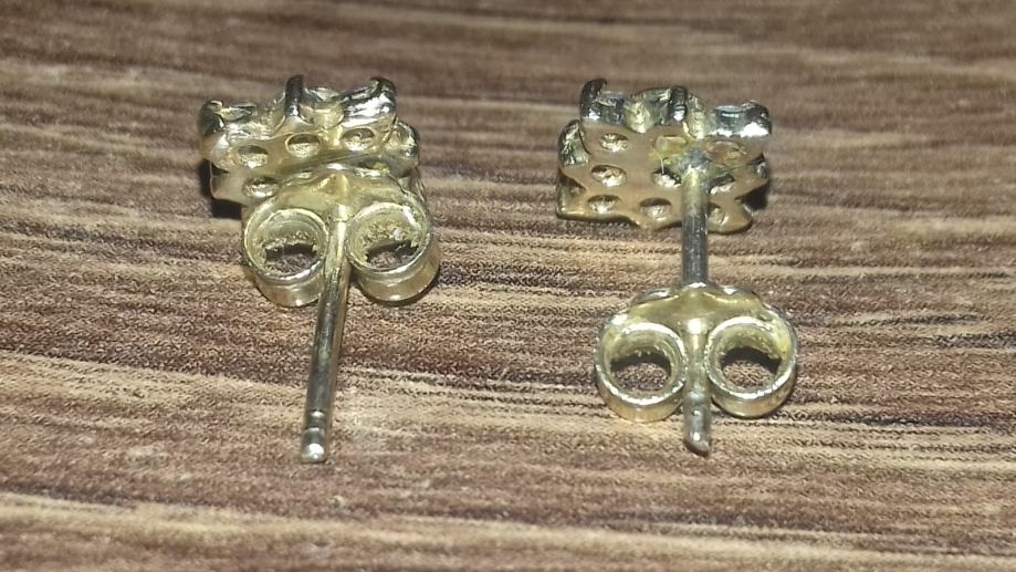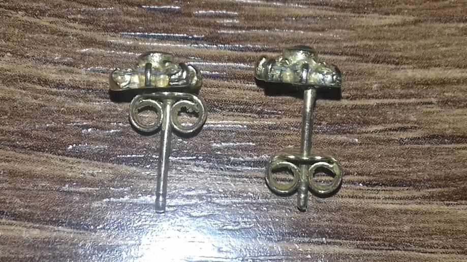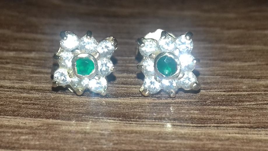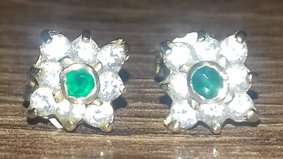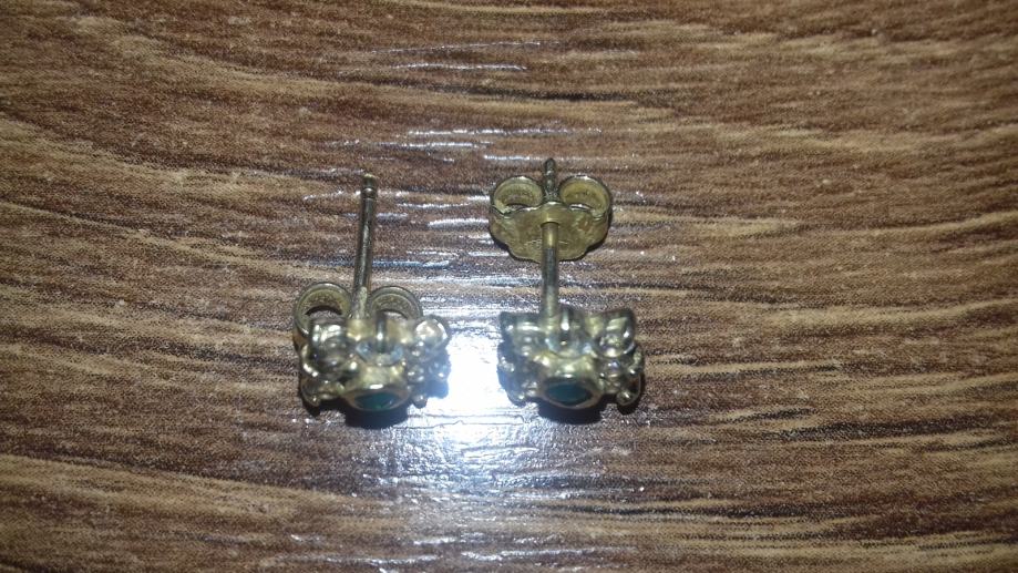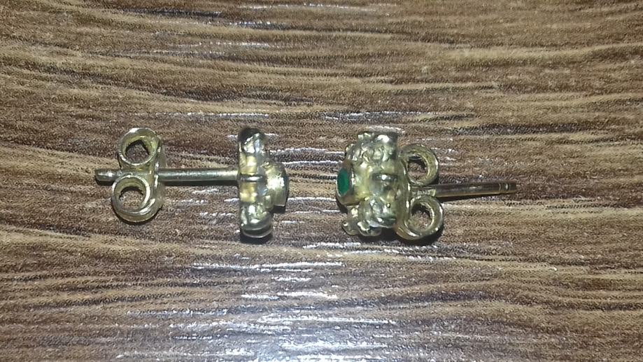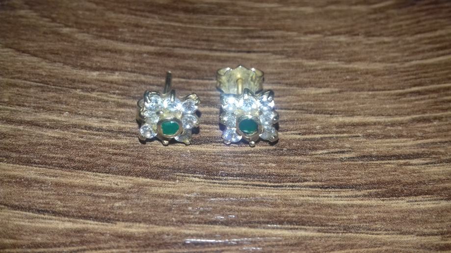 Predivne zlatne naušnice sa zelenim i bijelim kamenjem, 585 (14K), 2g, u odličnom stanju.