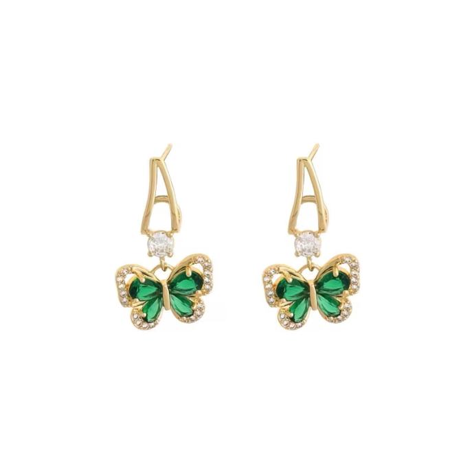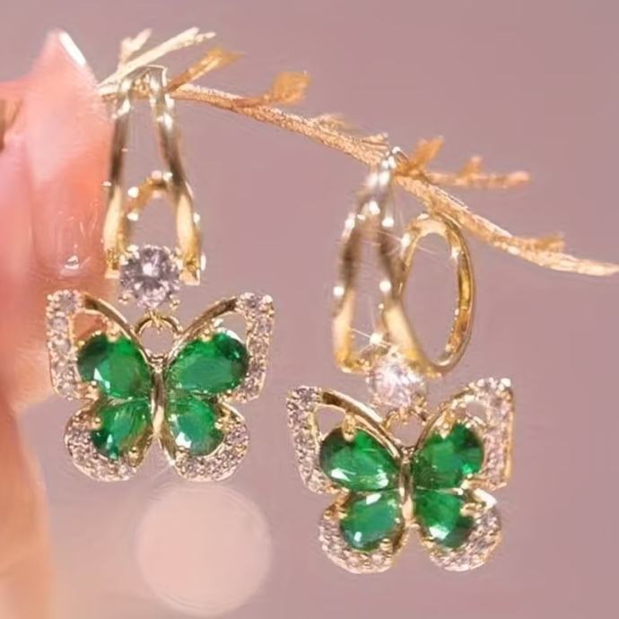 Set od 2 prekrasne zelene viseće naušnice s leptirom - izrađene od hipoalergenih naušnica od nehrđajućeg čelika, čvrsti dizajn od legure, elegantan modni dodatak