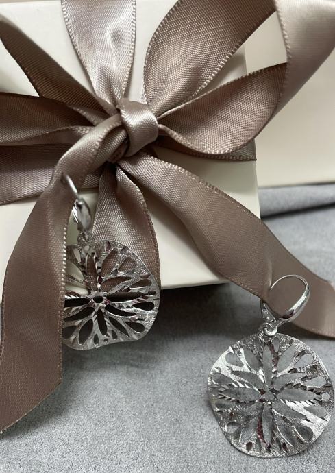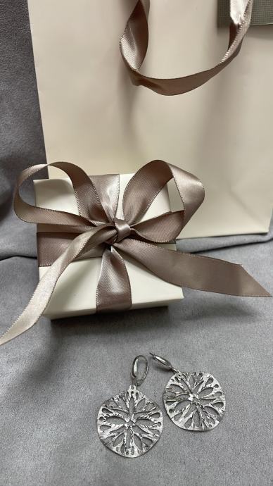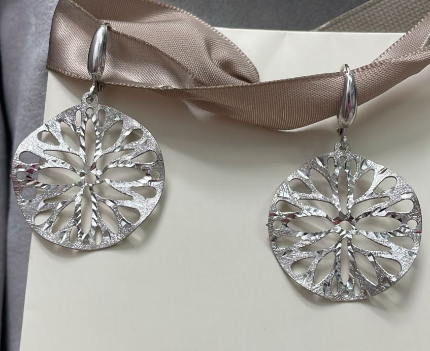 Prodajemo srebrne stilizirane viseće naušnice sa sigurnosnom kopčom.