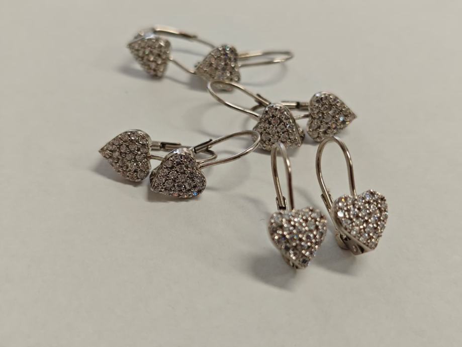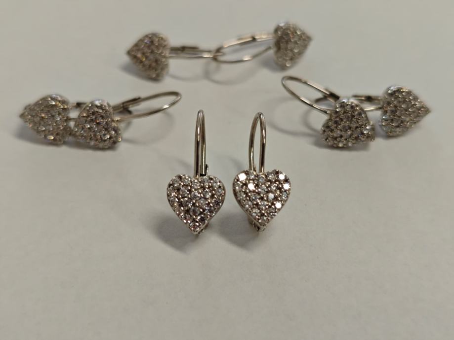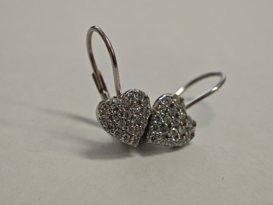 Prodajemo srebrne viseće naušnice u obliku srca.