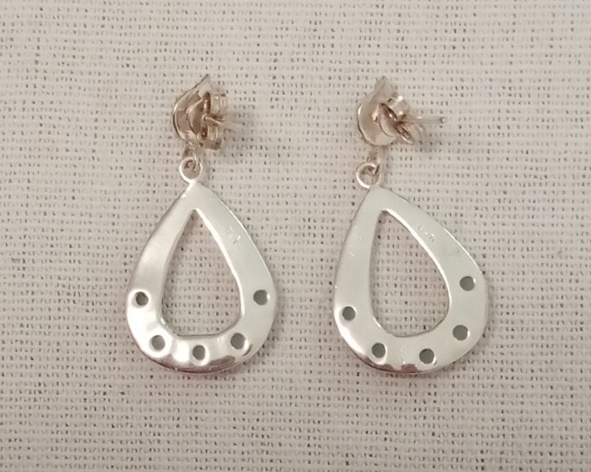 Čisto srebro 925 (sterling silver) sa žigom na poleđini. Naušnice se kopčaju na šarafić.