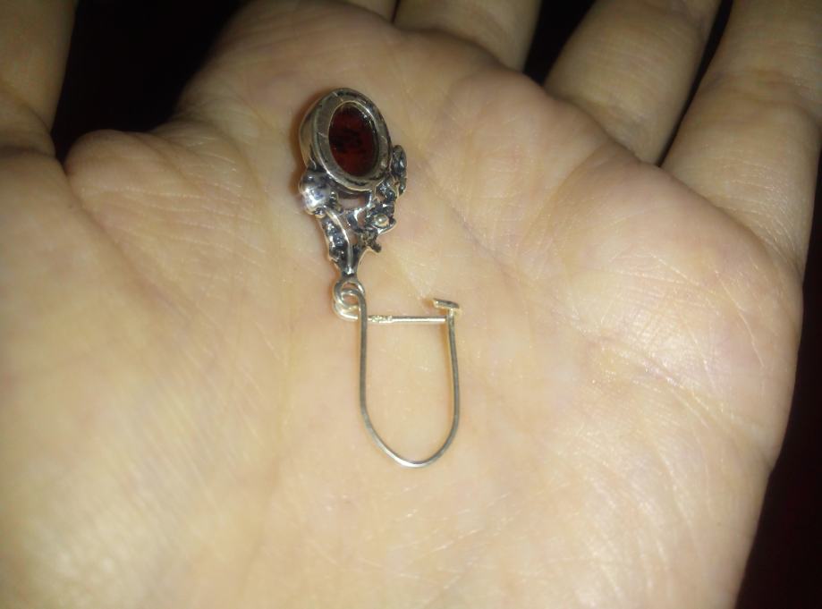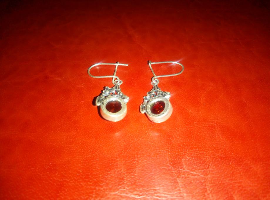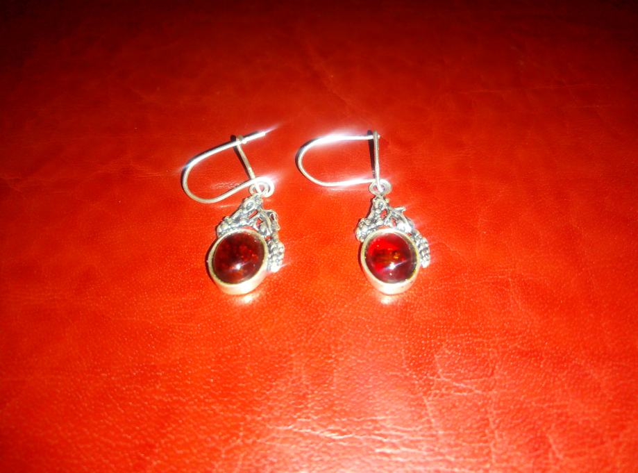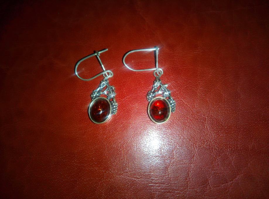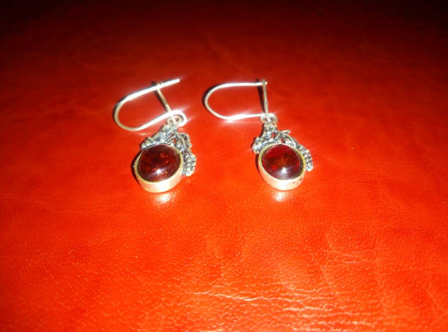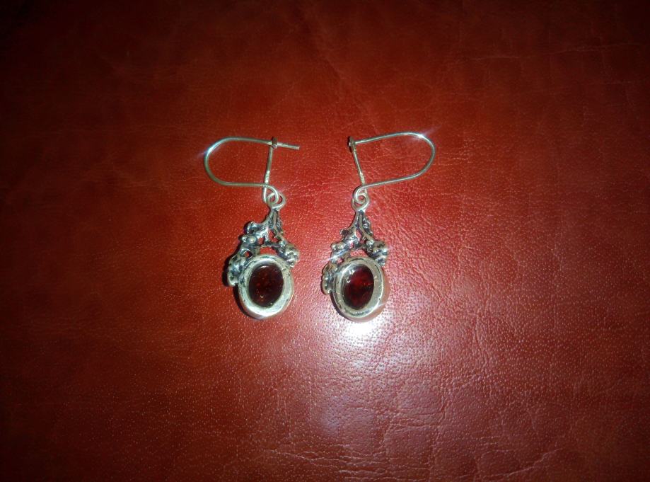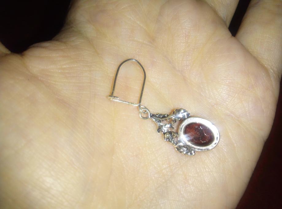 Srebrne naušnice sa crvenim kamenom i motivom vinove loze, u odličnom stanju.