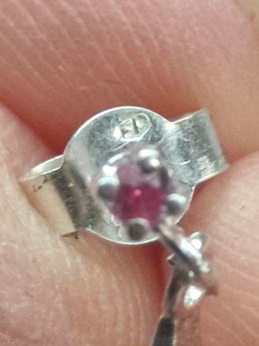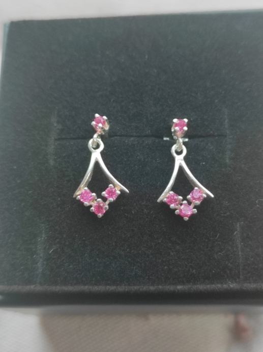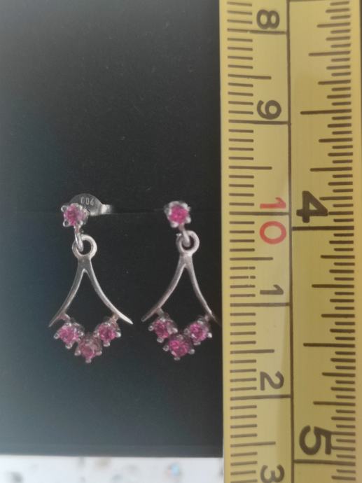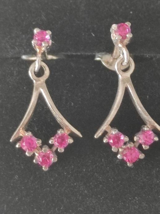 Viseće naušnice na iglicu od pravog srebra Ag925 sa ružičastim cirkonima, težina: 1,28g.