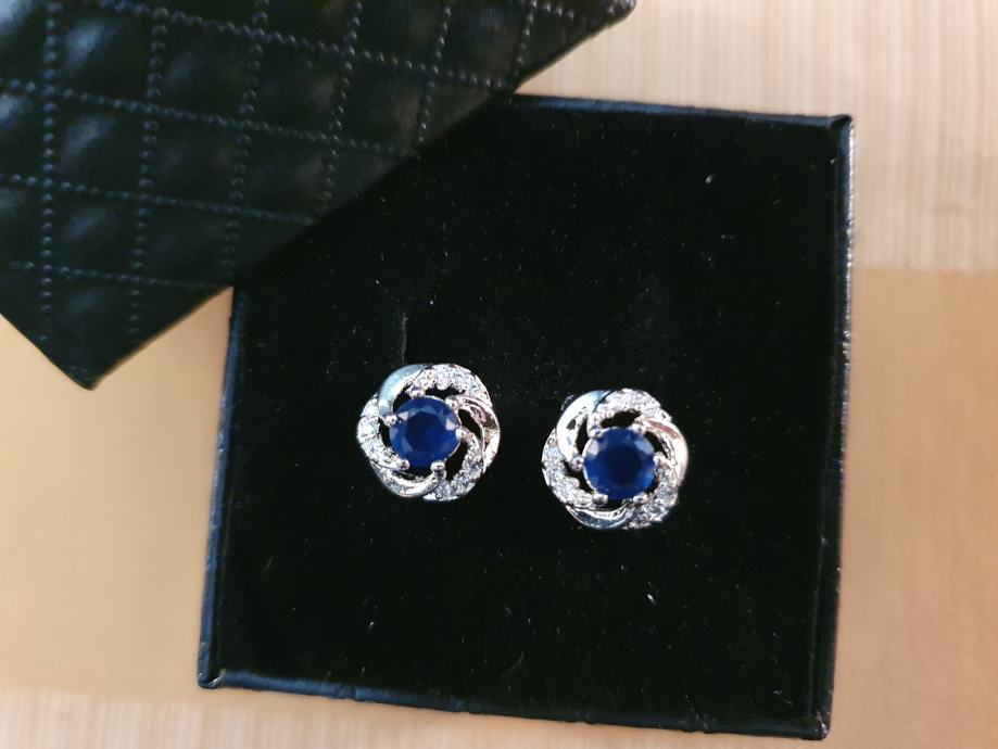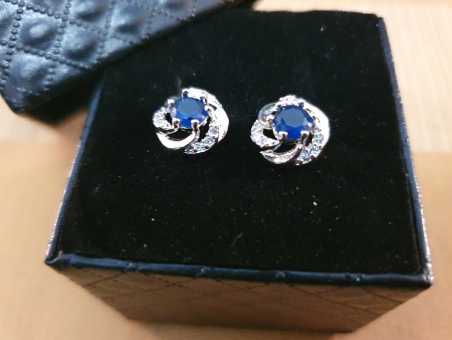 Srebrne naušnice na šaraf, žig 925, sa plavim kamenom