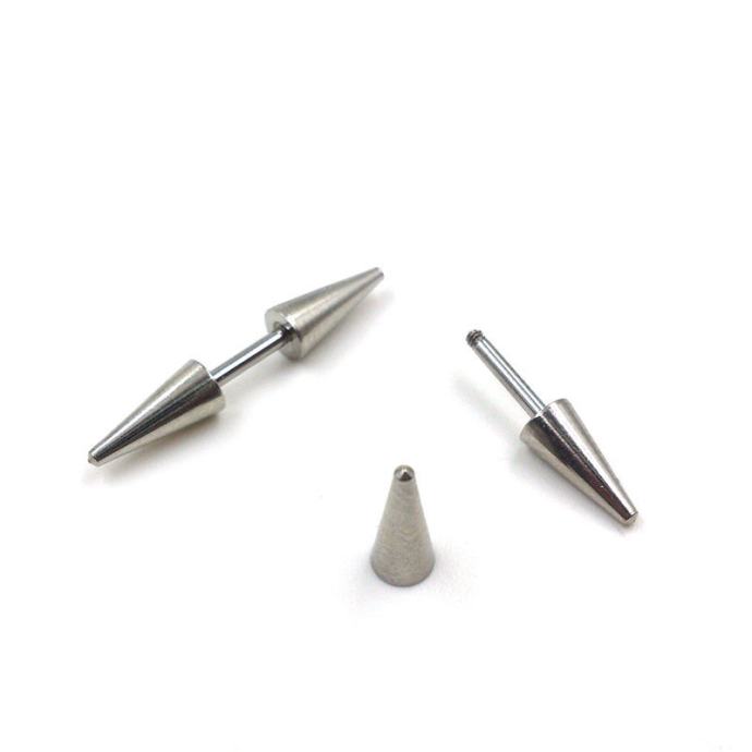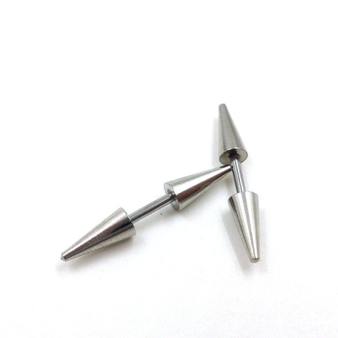 Spike naušnice od nehrđajućeg čelika u srebrnoj nijansi.
