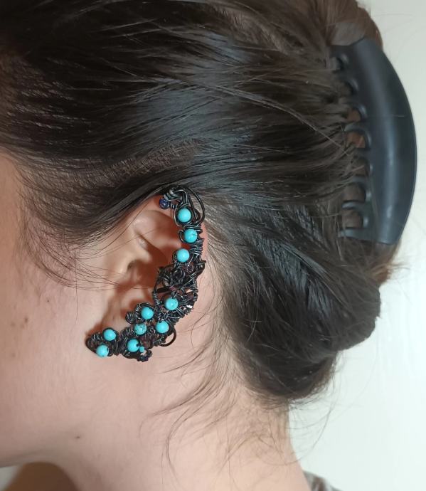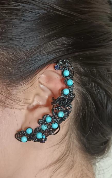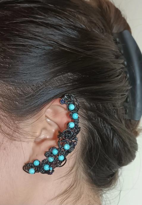Ukras za uho , earcuff izrađen od crne aluminijske žice i tirkiznih perlica.Rucni rad.