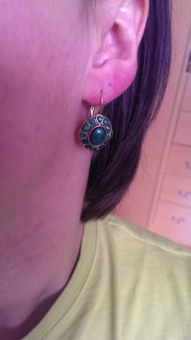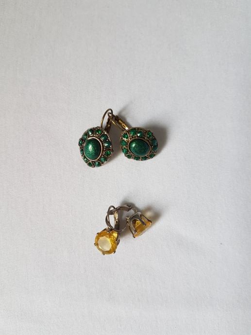 Pozlaćene naušnice sa zelenim kamenjem, imaju iza kopću