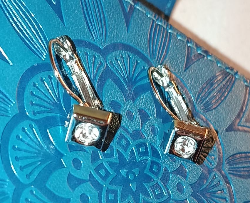 Ove naušnice od kvalitetnog nehrđajućeg čelika su elegantan model s četvrtastim privjeskom i prozirnim kristalom. Karakterizira ih ruska kopča koja omogućuje sigurno i udobno nošenje.