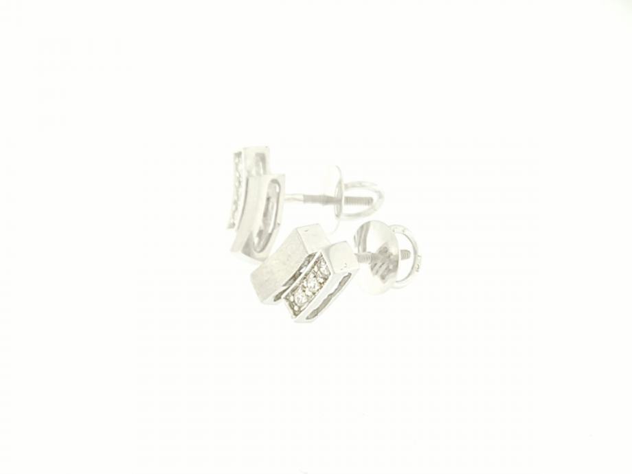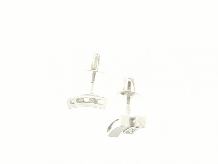 Zlatne štift naušnice na šaraf, na svakoj naušnici 3 dijamanta od 0,01ct, ukupno 0,06ct dijamanata, mat štapić povezan s istim takvim štapićem ispunjenim dijamantima, bijelo 14K zlato, žig 585.