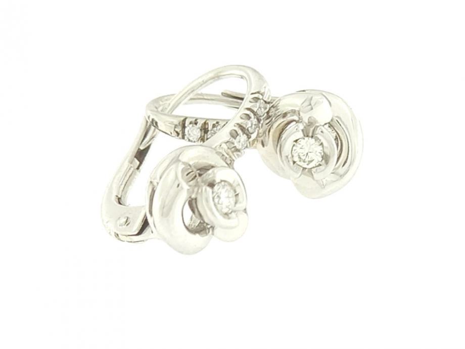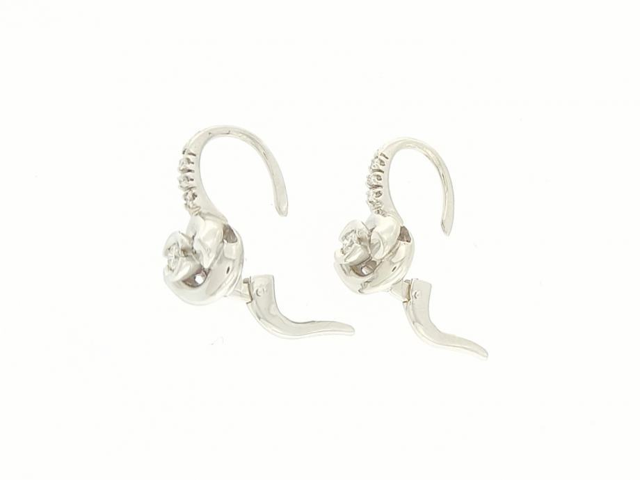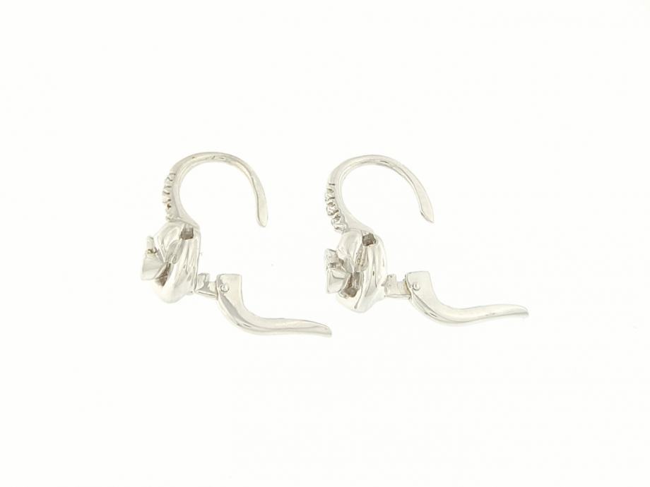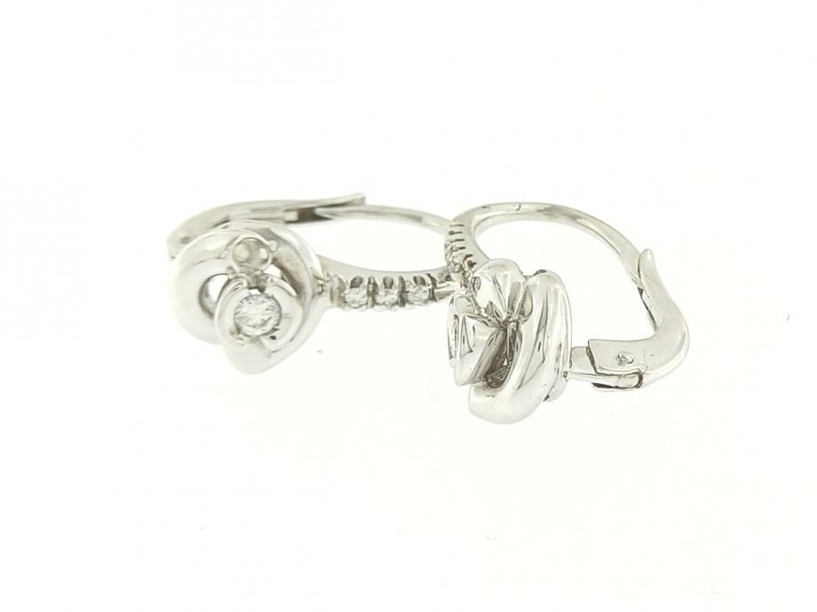 Zlatne viseće naušnice u obliku ruže, na svakoj naušnici 1 dijamant od 0,05ct, i 3 dijamanta od 0,005ct, ukupno 0,13ct dijamanta,