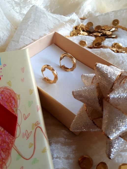 Prekrasne, nove, zlatne naušnice, raspakirane samo radi fotografiranja.