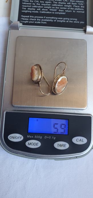 Visina naušnica ukupna sa alkicom 2,6 cm x 1,2 cm ovalnog oblika te težine 5,90 grama obje