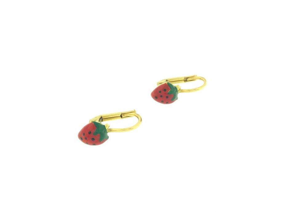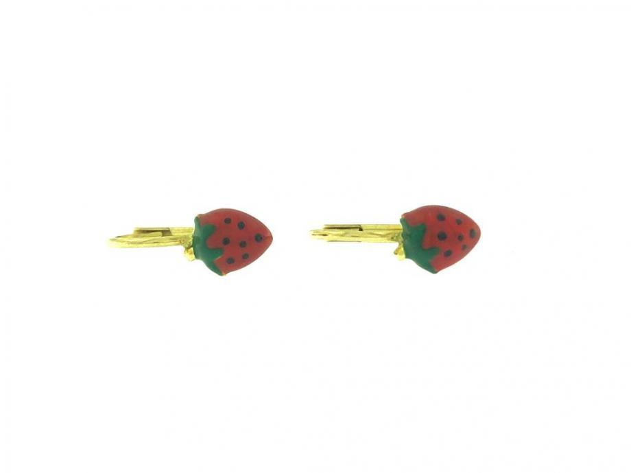 Zlatne naušnice dječje, viseće, žuto 14K zlato, žig 585, emajlirane jagodice.