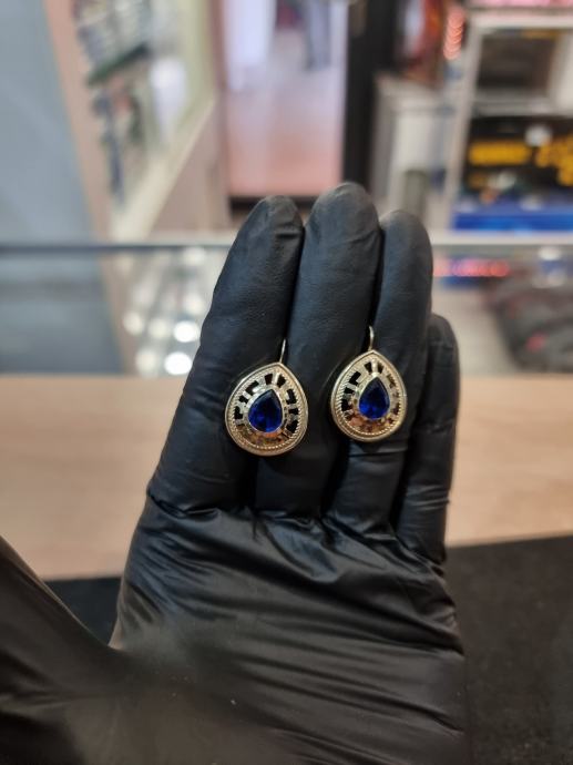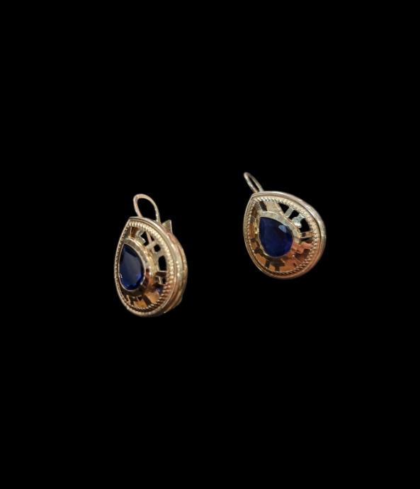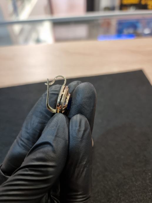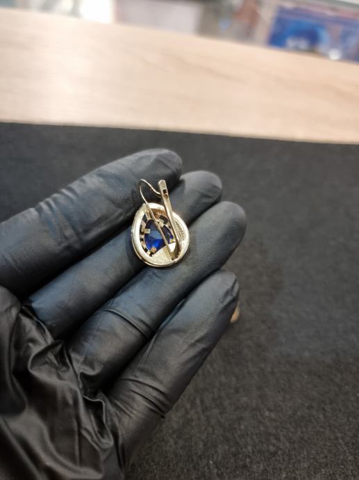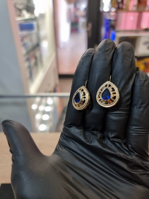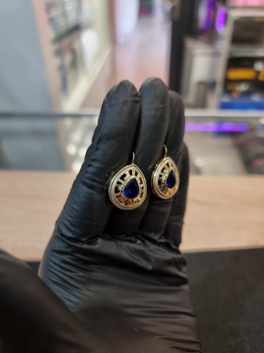 PRODAJEMO ZLATNE NAUŠNICE SA PLAVIM KAMENOM 14K .585 3,87G.