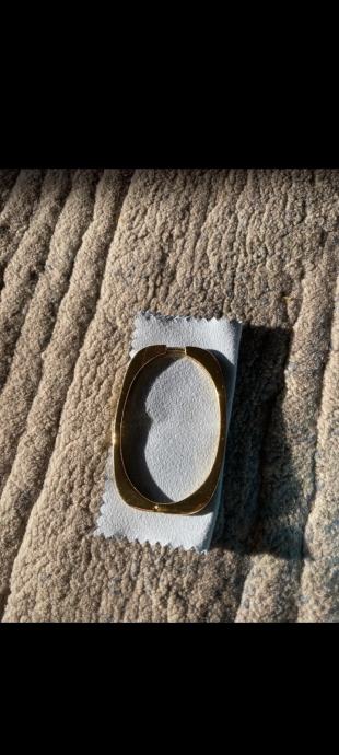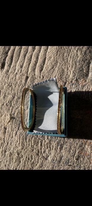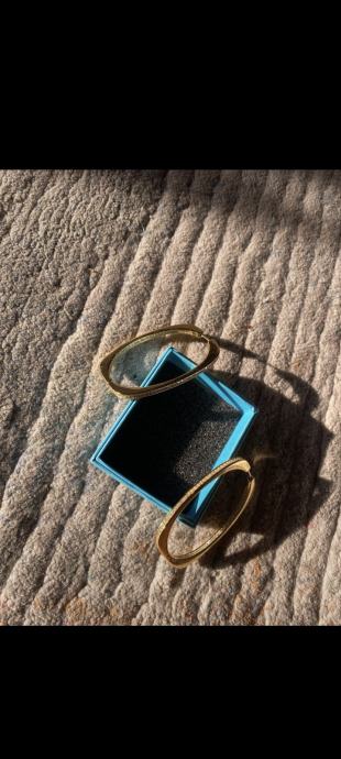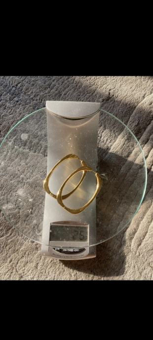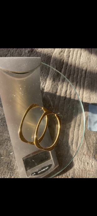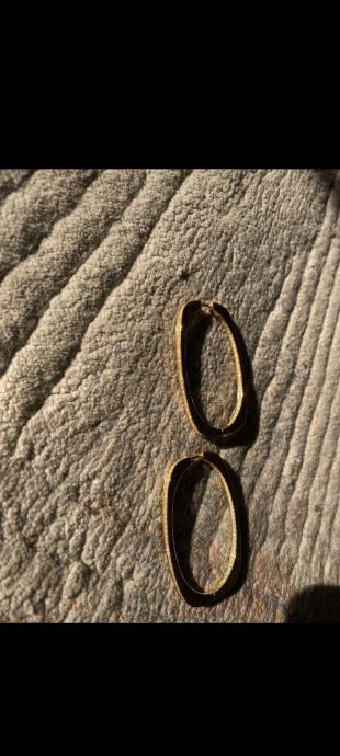 Nove nenosene zlatne viseće naušnice za žene i djevojke, lagane velike naušnice. Svaka teži 13 grama. Zlatne velike naušnice 14K pozlaćene tipa kvadratne naušnice ali zaobljene. Čisto srebro pozlaćeno s 14K zlatom. Kupljene za 35 eura.