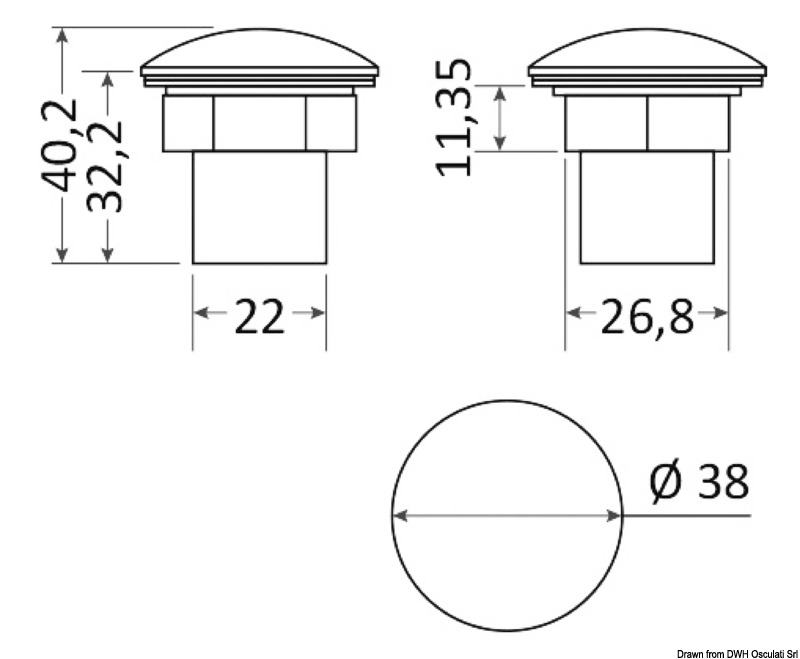 Ambijetalno brodsko svjetlo LED ugradbeno – prednje 12V, 0.2W, bijela boja IP68.